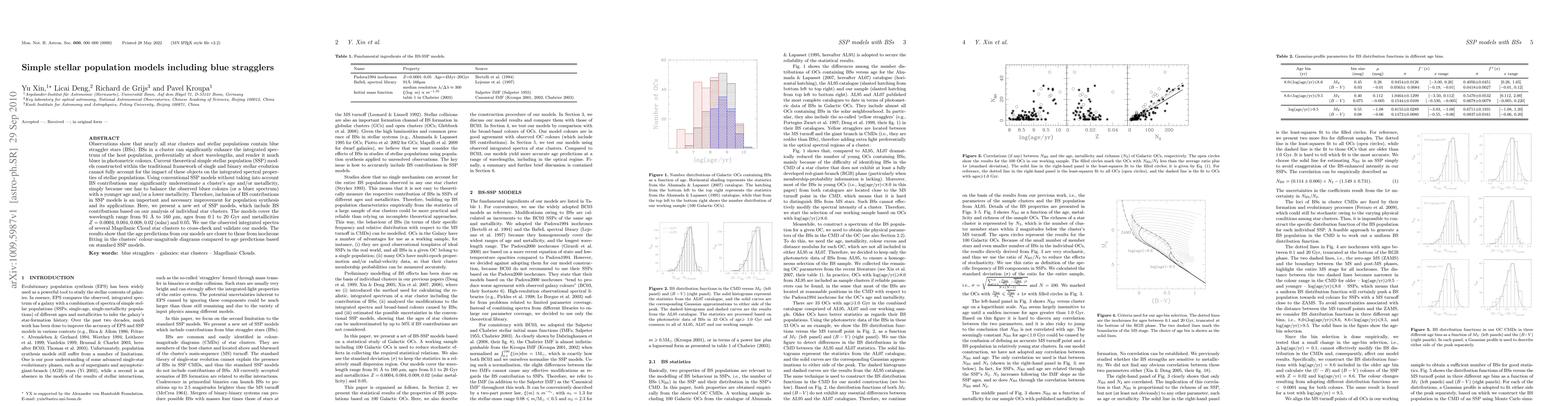 This paper introduces new simple stellar population models that include blue straggler stars, which significantly enhance the integrated spectrum and bluer photometric colors of star clusters. The new models, validated against Magellanic Cloud star clusters, provide more accurate age predictions compared to traditional models that do not account for blue stragglers.