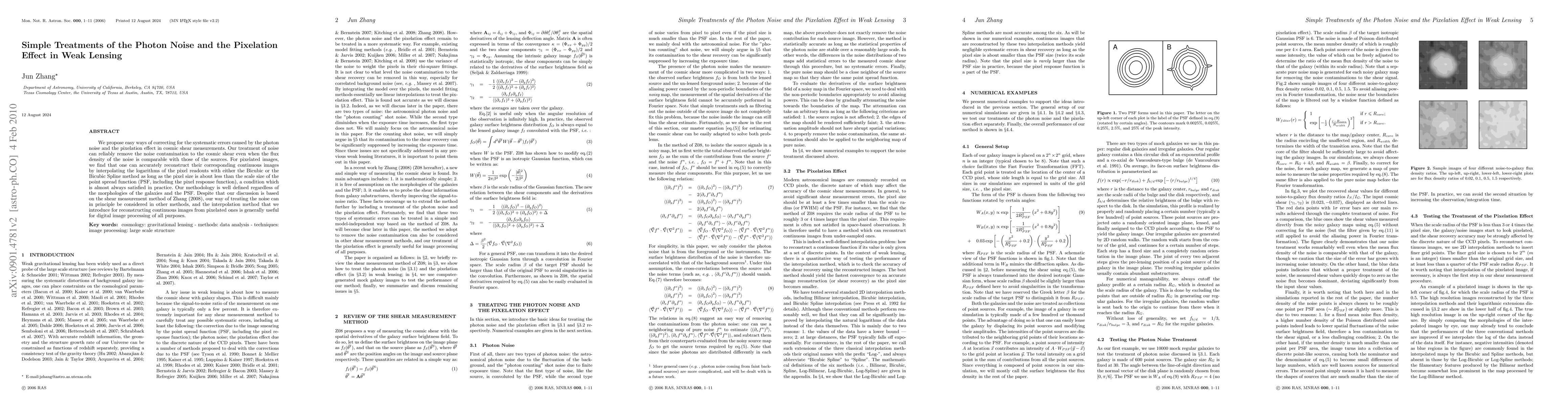 Researchers propose simple methods to correct for photon noise and pixelation effects in cosmic shear measurements, enabling accurate galaxy shape analysis with minimal systematic errors.