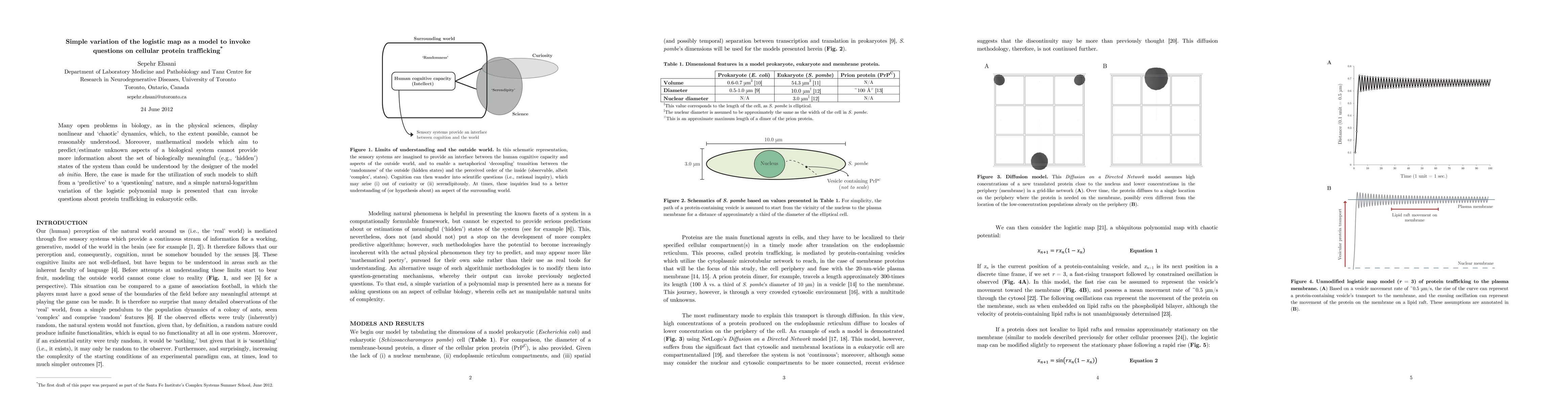 Many open problems in biology, as in the physical sciences, display nonlinear and 'chaotic' dynamics, which, to the extent possible, cannot be reasonably understood. Moreover, mathematical models which aim to predict/estimate unknown aspects of a biological system cannot provide more information about the set of biologically meaningful (e.g., 'hidden') states of the system than could be understood by the designer of the model ab initio. Here, the case is made for the utilization of such models to shift from a 'predictive' to a 'questioning' nature, and a simple natural-logarithm variation of the logistic polynomial map is presented that can invoke questions about protein trafficking in eukaryotic cells.