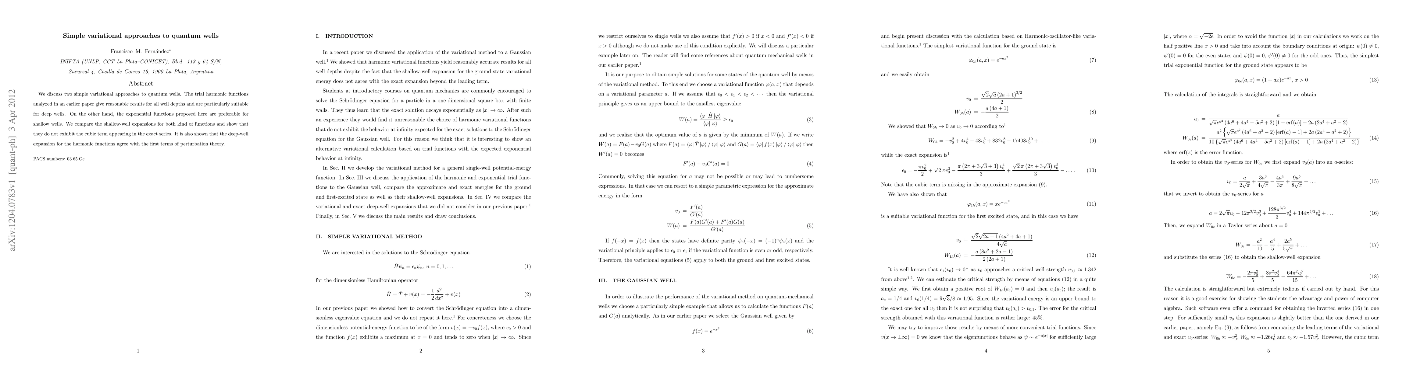The paper introduces two variational approaches to quantum wells, one using harmonic functions suitable for deep wells and another using exponential functions better suited for shallow wells, with implications for understanding the behavior of quantum wells in different depth ranges.
