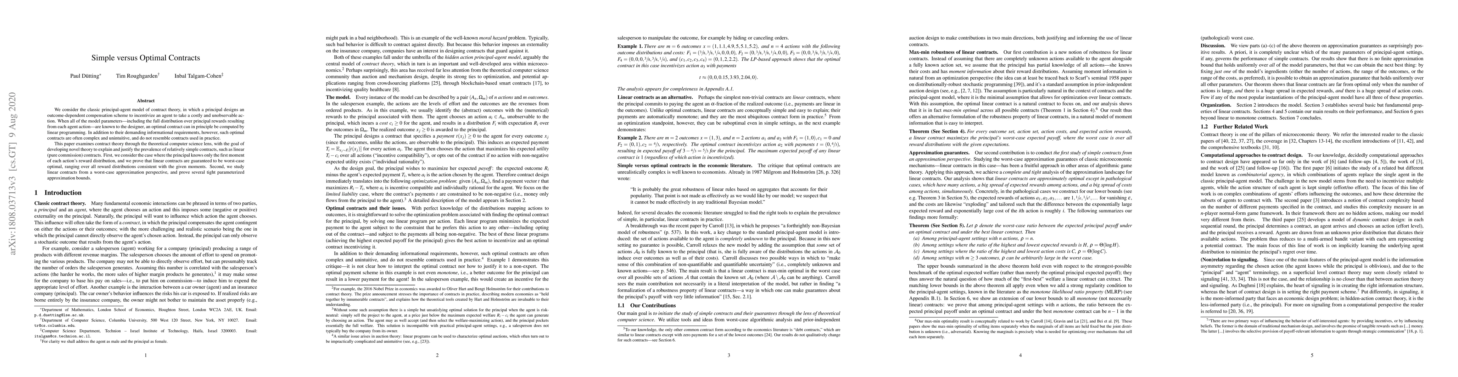 Researchers investigated how contracts should incentivize agents to take costly actions, finding that simple linear contracts can be optimal in certain cases, even when more complex contracts are possible.
