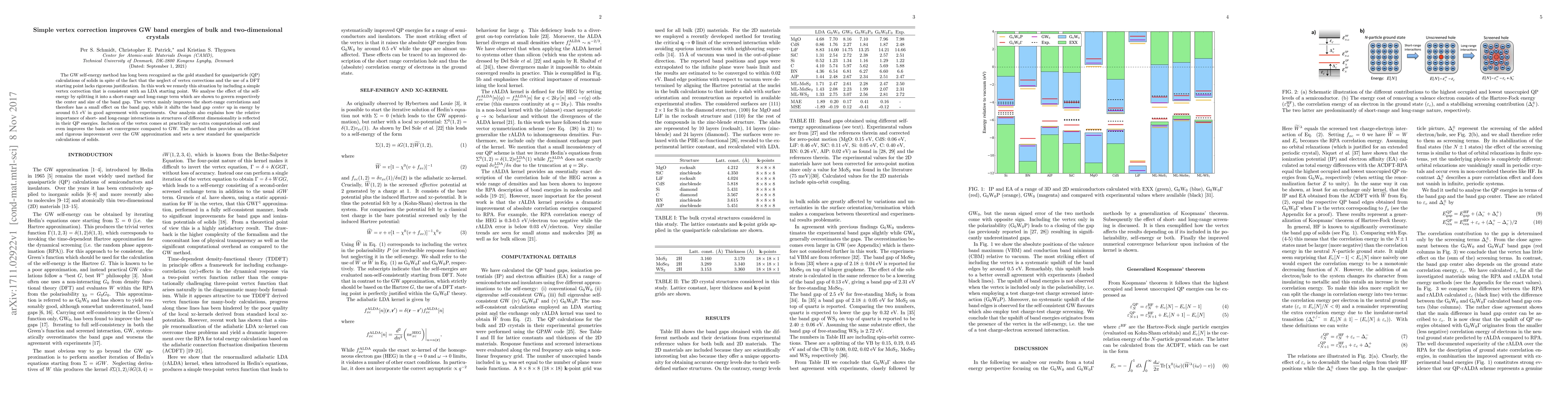 The GW self-energy method has long been recognized as the gold standard for quasiparticle (QP) calculations of solids in spite of the fact that the neglect of vertex corrections and the use of a DFT starting point lacks rigorous justification. In this work we remedy this situation by including a simple vertex correction that is consistent with an LDA starting point. We analyse the effect of the self-energy by splitting it into a short-range and long-range term which are shown to govern respectively the center and size of the band gap. The vertex mainly improves the short-range correlations and therefore has a small effect on the band gap, while it shifts the band gap center up in energy by around 0.5 eV in good agreement with experiments. Our analysis also explains how the relative importance of short- and long-range interactions in structures of different dimensionality is reflected in their QP energies. Inclusion of the vertex comes at practically no extra computational cost and even improves the basis set convergence compared to GW. The method thus provides an efficient and rigorous improvement over the GW approximation and sets a new standard for quasiparticle calculations of solids.