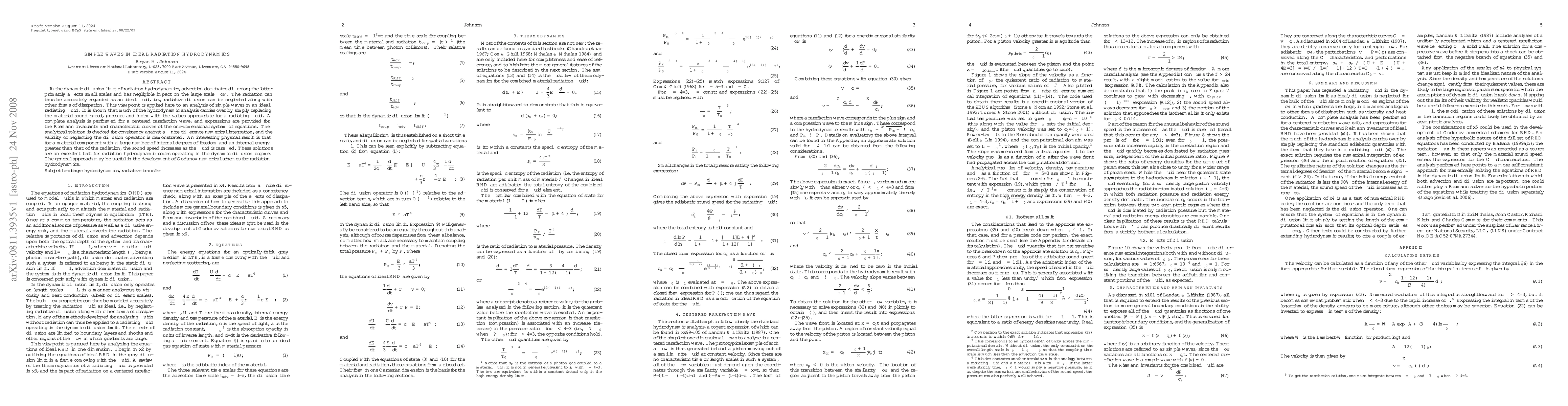 In the dynamic diffusion limit of radiation hydrodynamics, advection dominates diffusion; the latter primarily affects small scales and has negligible impact on the large scale flow. The radiation can thus be accurately regarded as an ideal fluid, i.e., radiative diffusion can be neglected along with other forms of dissipation. This viewpoint is applied here to an analysis of simple waves in an ideal radiating fluid. It is shown that much of the hydrodynamic analysis carries over by simply replacing the material sound speed, pressure and index with the values appropriate for a radiating fluid. A complete analysis is performed for a centered rarefaction wave, and expressions are provided for the Riemann invariants and characteristic curves of the one-dimensional system of equations. The analytical solution is checked for consistency against a finite difference numerical integration, and the validity of neglecting the diffusion operator is demonstrated. An interesting physical result is that for a material component with a large number of internal degrees of freedom and an internal energy greater than that of the radiation, the sound speed increases as the fluid is rarefied. These solutions are an excellent test for radiation hydrodynamic codes operating in the dynamic diffusion regime. The general approach may be useful in the development of Godunov numerical schemes for radiation hydrodynamics.
