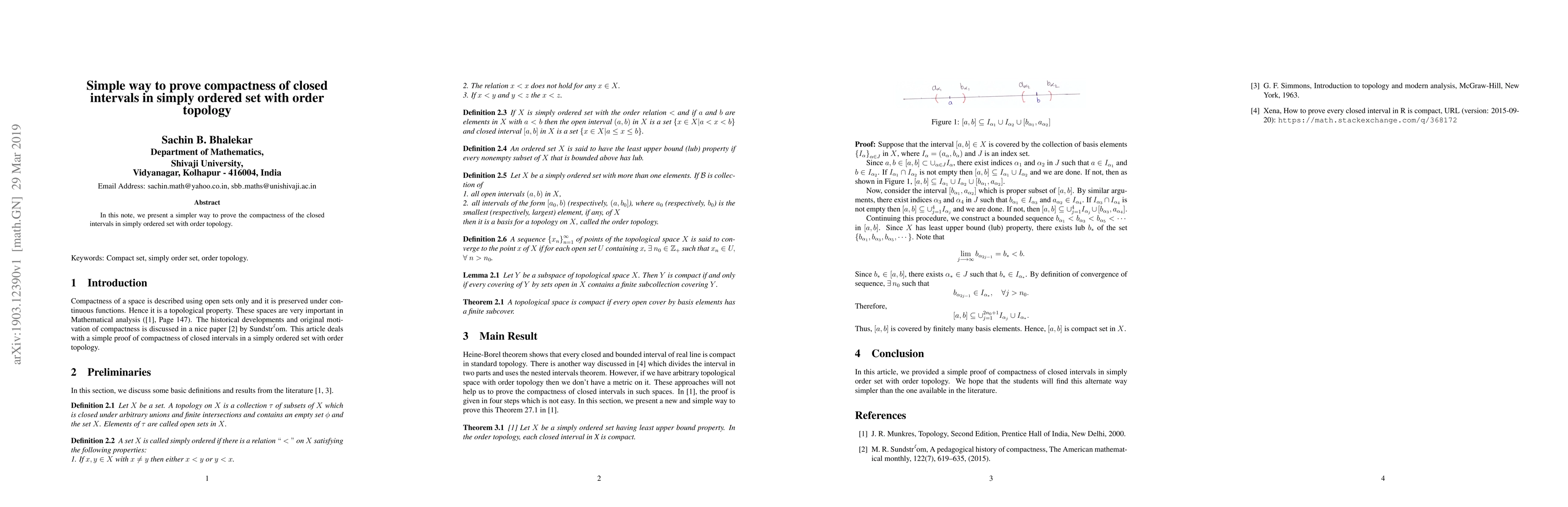 In this note, we present a simpler way to prove the compactness of the closed intervals in simply ordered set with order topology.