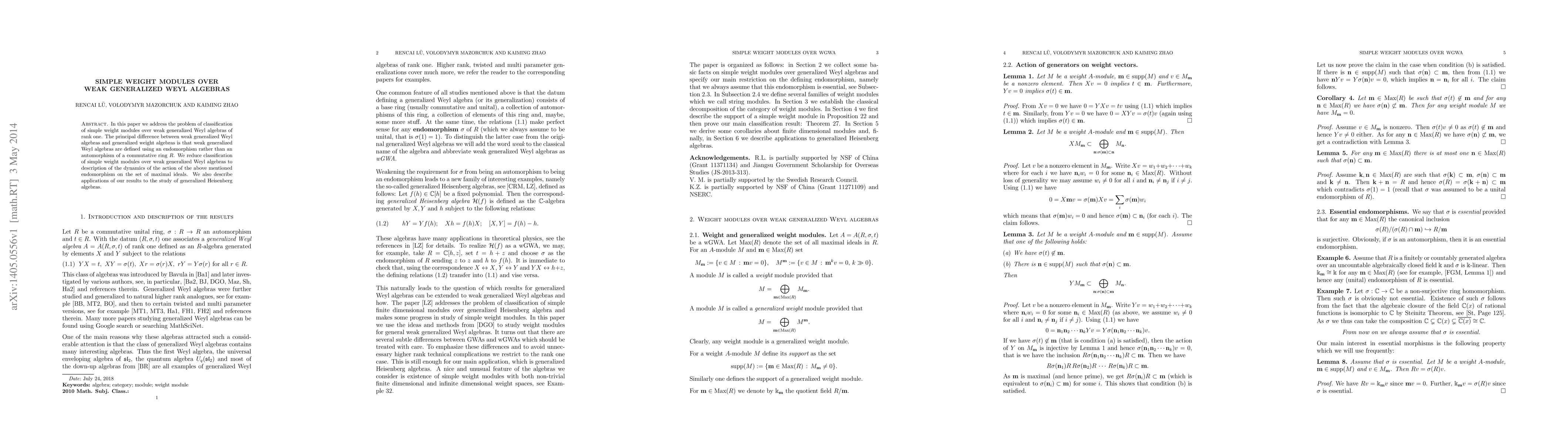 This paper classifies simple weight modules over rank one weak generalized Weyl algebras, distinguishing them from generalized weight algebras by using an endomorphism instead of an automorphism. The classification is reduced to analyzing the endomorphism's dynamics on maximal ideals, with applications to generalized Heisenberg algebras.