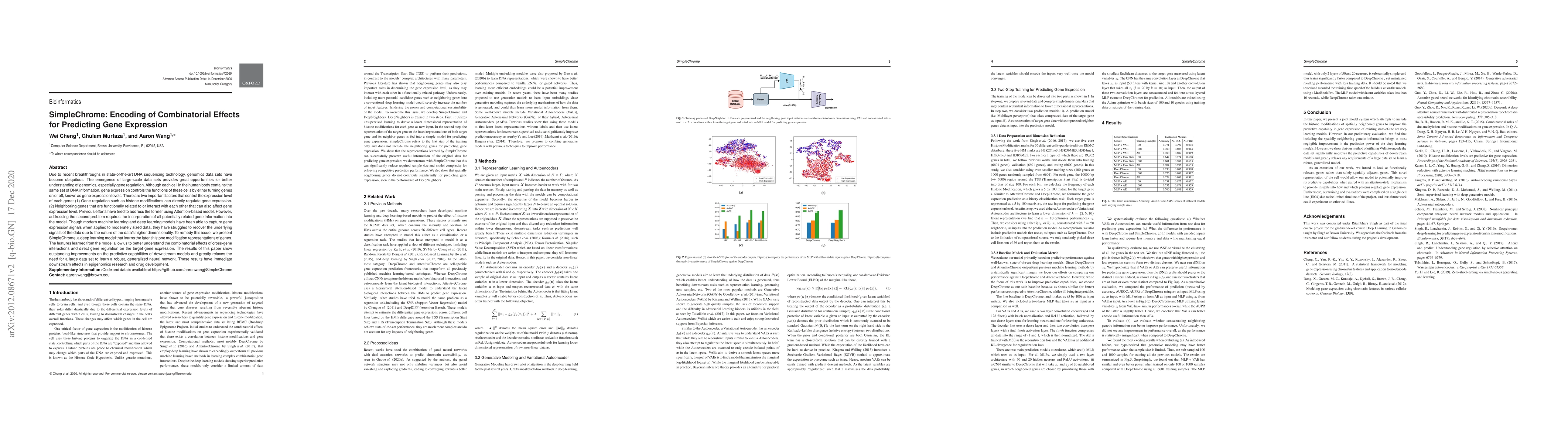 SimpleChrome is a deep learning model designed to predict gene expression by encoding combinatorial effects of gene regulation and cross-gene interactions. It improves predictive capabilities for downstream models and reduces the need for large datasets, benefiting epigenomics research and drug development.