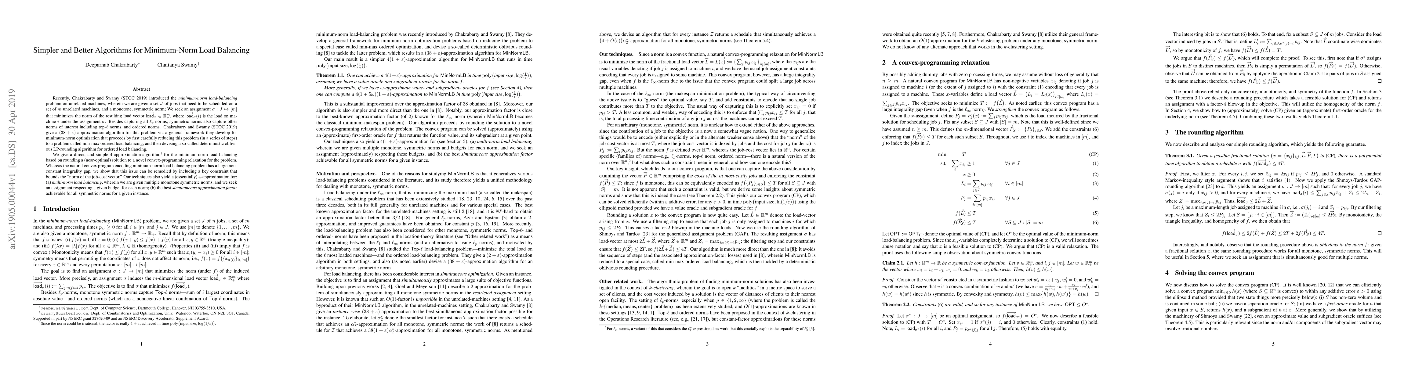 This paper presents a direct and simple 4-approximation algorithm for the minimum-norm load balancing problem on unrelated machines, improving upon the previous (38+ε)-approximation. The authors achieve this by rounding a near-optimal solution to a novel convex-programming relaxation, incorporating a key constraint to address the integrality gap. The techniques also extend to multi-norm load balancing and simultaneous approximation for all symmetric norms.