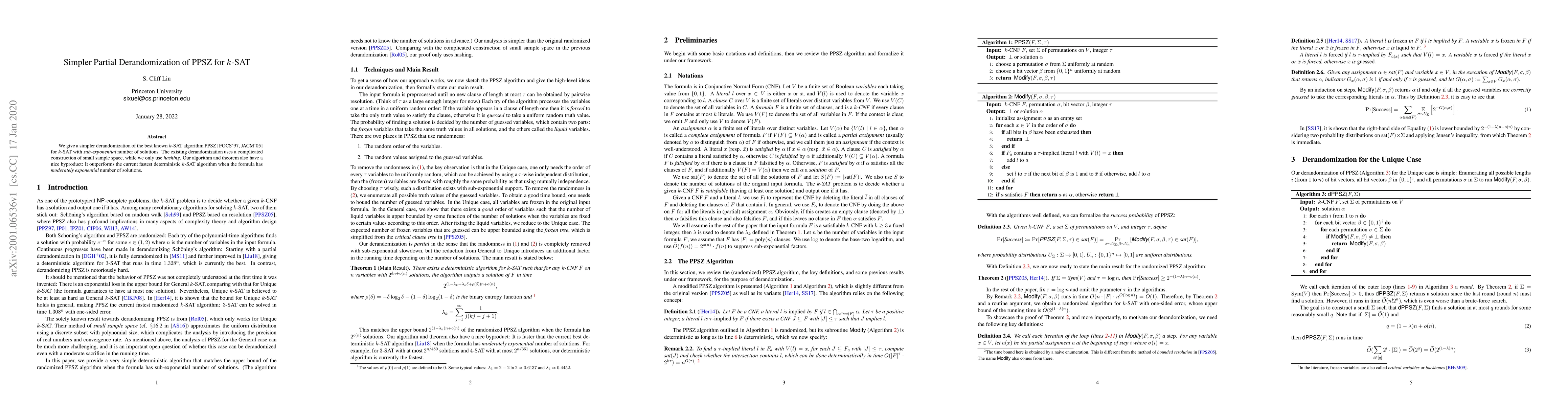 This paper provides a simpler derandomization of the PPSZ algorithm for $k$-SAT using hashing instead of complex constructions, achieving sub-exponential runtime. It outperforms current fastest deterministic algorithms for $k$-SAT when the formula has moderately exponential solutions.