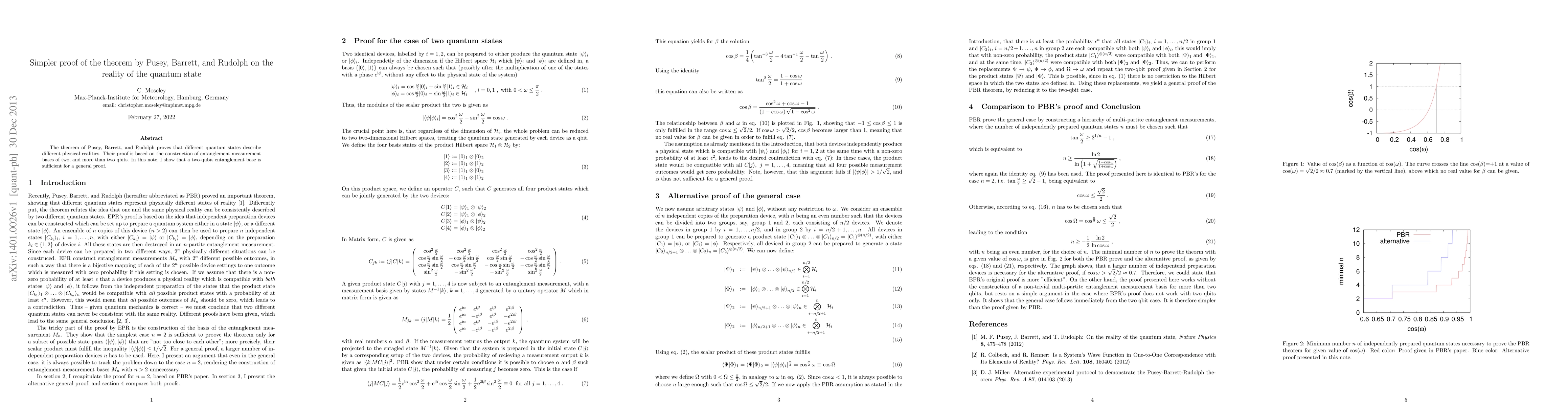 The theorem of Pusey, Barrett, and Rudolph proves that different quantum states describe different physical realities. Their proof is based on the construction of entanglement measurement bases of two, and more than two qbits. In this note, I show that a two-qubit entanglement base is sufficient for a general proof.