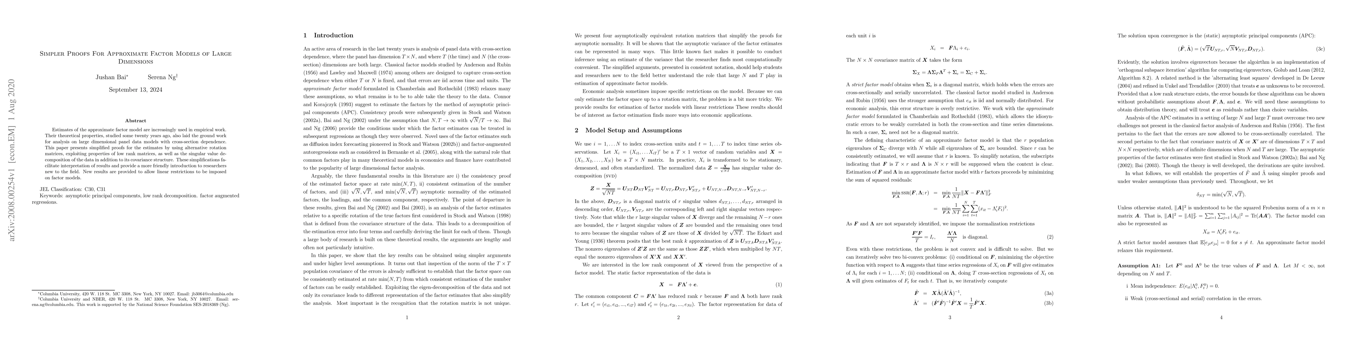 Estimates of the approximate factor model are increasingly used in empirical work. Their theoretical properties, studied some twenty years ago, also laid the ground work for analysis on large dimensional panel data models with cross-section dependence. This paper presents simplified proofs for the estimates by using alternative rotation matrices, exploiting properties of low rank matrices, as well as the singular value decomposition of the data in addition to its covariance structure. These simplifications facilitate interpretation of results and provide a more friendly introduction to researchers new to the field. New results are provided to allow linear restrictions to be imposed on factor models.