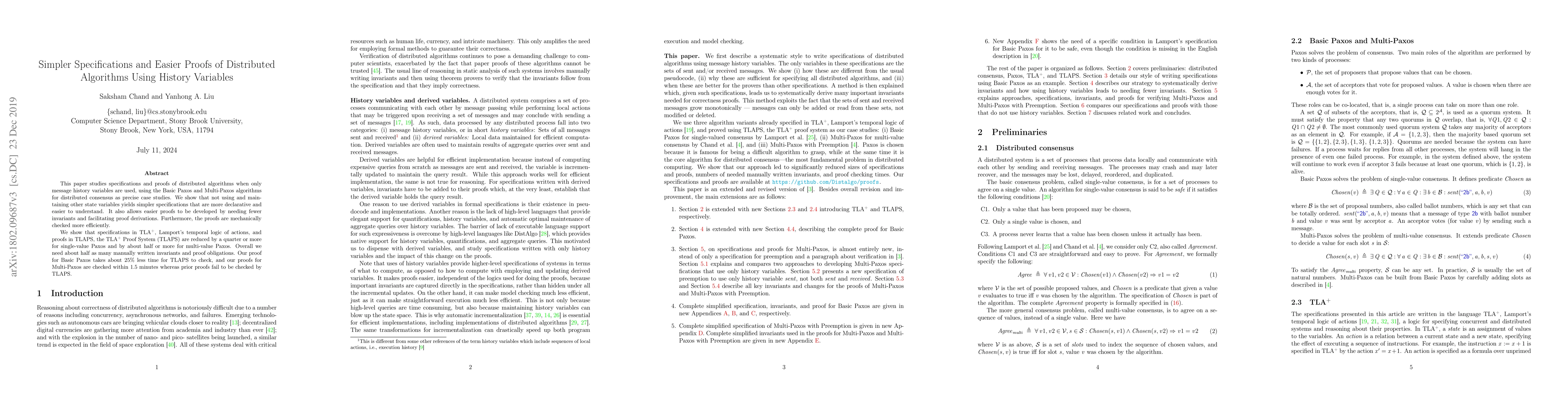This paper demonstrates that using only message history variables in distributed algorithms simplifies specifications and proofs, exemplified by Basic Paxos and Multi-Paxos. It shows that this approach reduces complexity, requires fewer invariants, and allows for more efficient mechanical checking of proofs.