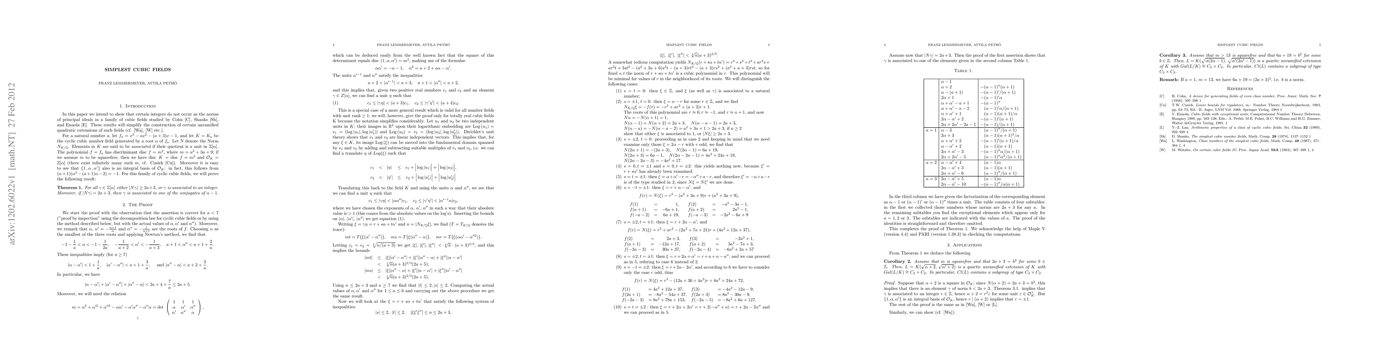 Research shows that certain integers cannot occur as norms of principal ideals in cubic fields, simplifying the construction of unramified quadratic extensions.