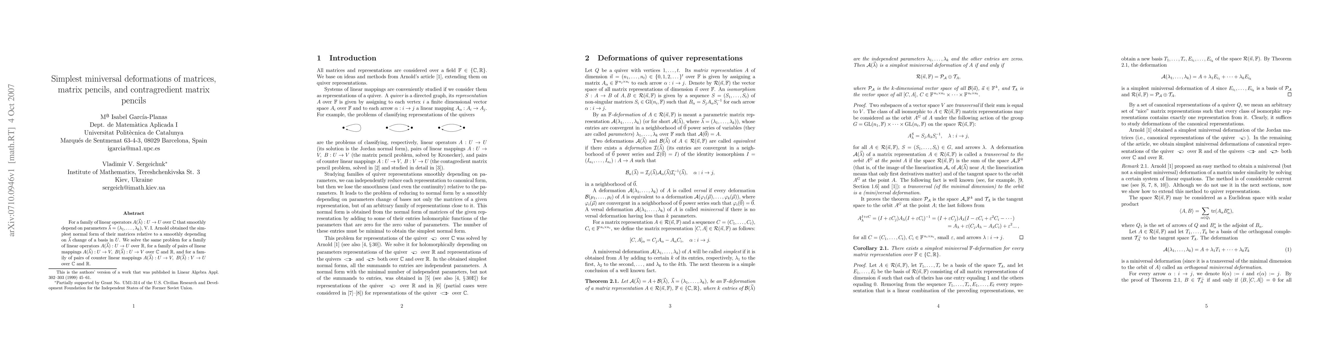 V. I. Arnold [Russian Math. Surveys 26 (2) (1971) 29-43] constructed a simple normal form for a family of complex n-by-n matrices that smoothly depend on parameters with respect to similarity transformations that smoothly depend on the same parameters. We construct analogous normal forms for a family of real matrices and a family of matrix pencils that smoothly depend on parameters, simplifying their normal forms by D. M. Galin [Uspehi Mat. Nauk 27 (1) (1972) 241-242] and by A. Edelman, E. Elmroth, B. Kagstrom [Siam J. Matrix Anal. Appl. 18 (3) (1997) 653-692].