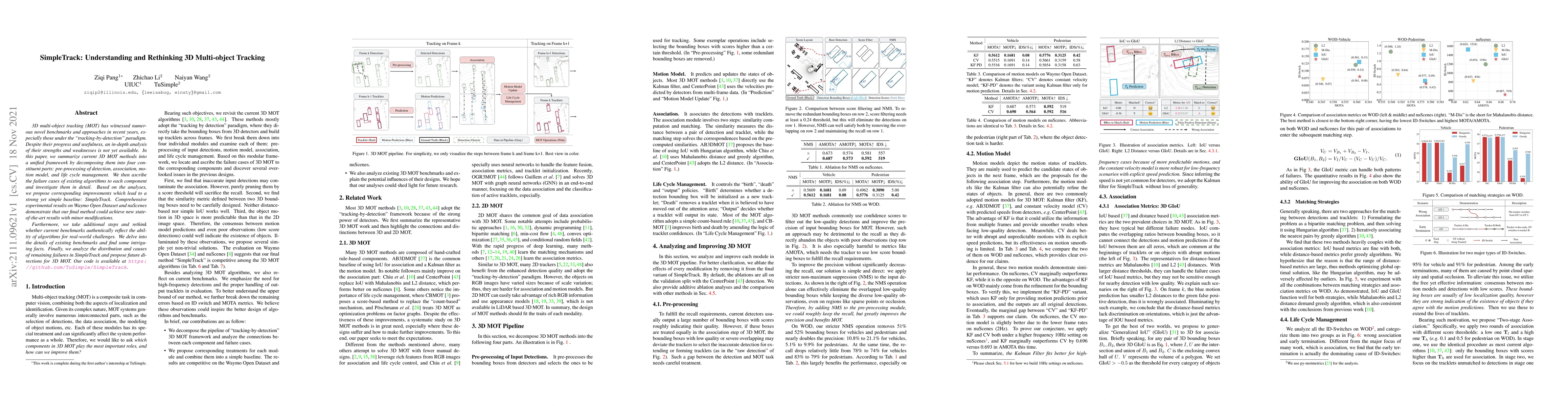 This paper proposes SimpleTrack, a unified framework for 3D multi-object tracking, by decomposing existing methods into four key components and identifying their failure cases. The authors achieve state-of-the-art results with minor improvements and critically assess current benchmarks to highlight their limitations and propose future directions for the field.