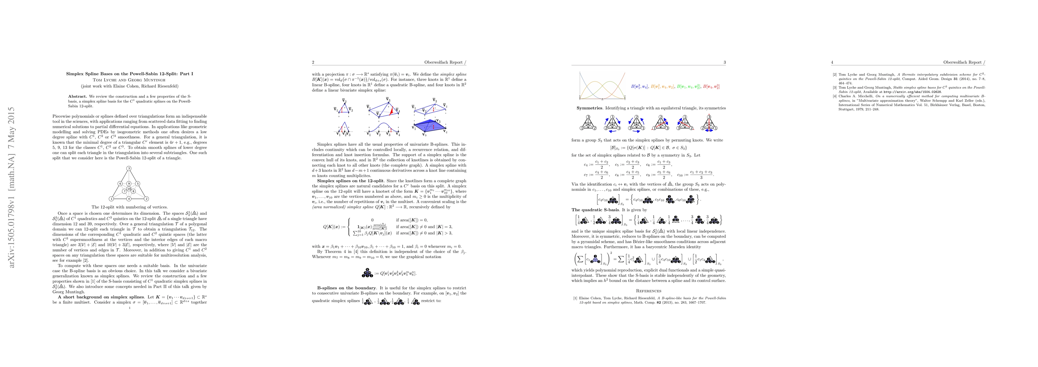 This paper reviews the construction and properties of the S-basis, a simplex spline basis for $C^1$ quadratic splines on the Powell-Sabin 12-split, providing foundational insights for further applications in computational geometry.