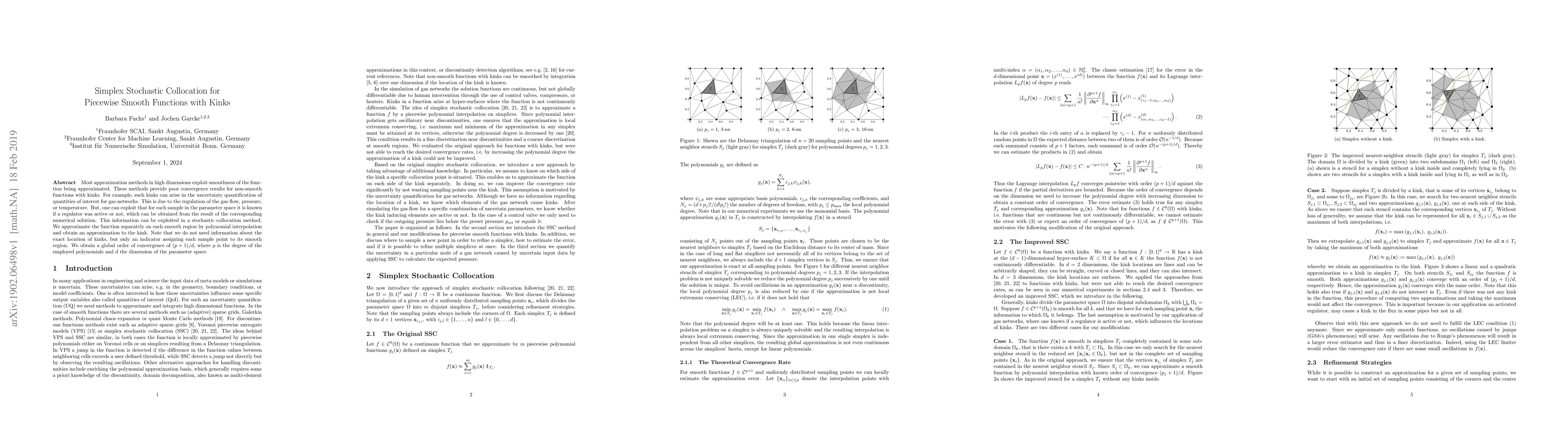 Most approximation methods in high dimensions exploit smoothness of the function being approximated. These methods provide poor convergence results for non-smooth functions with kinks. For example, such kinks can arise in the uncertainty quantification of quantities of interest for gas networks. This is due to the regulation of the gas flow, pressure, or temperature. But, one can exploit that for each sample in the parameter space it is known if a regulator was active or not, which can be obtained from the result of the corresponding numerical solution. This information can be exploited in a stochastic collocation method. We approximate the function separately on each smooth region by polynomial interpolation and obtain an approximation to the kink. Note that we do not need information about the exact location of kinks, but only an indicator assigning each sample point to its smooth region. We obtain a global order of convergence of $(p+1)/d$, where $p$ is the degree of the employed polynomials and $d$ the dimension of the parameter space.