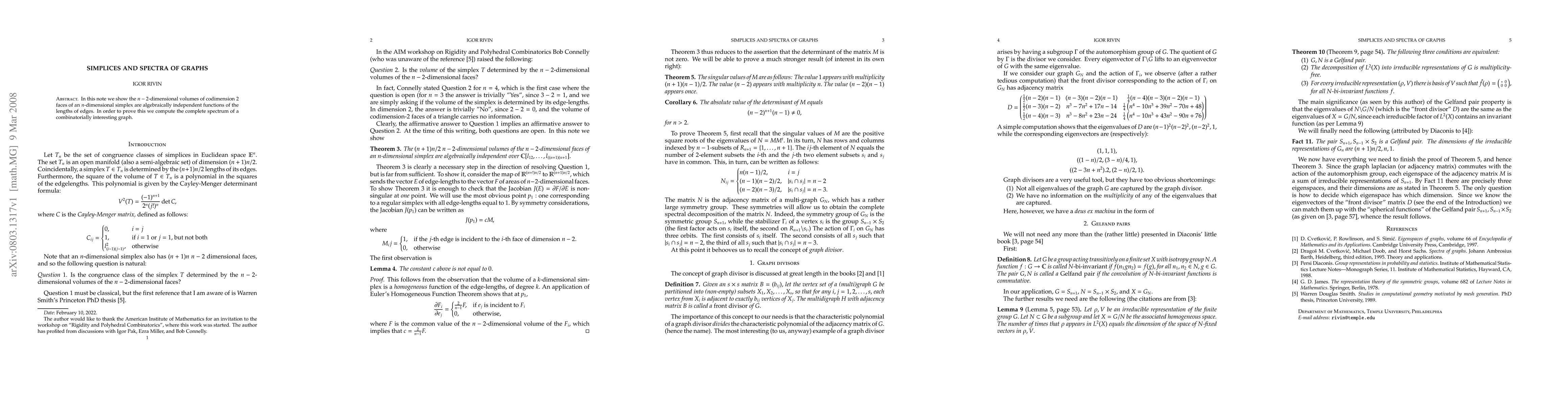 Researchers show that the volumes of certain faces in an n-dimensional simplex are independent of each other, depending only on the lengths of its edges, and compute the spectrum of a specific graph to prove this concept.