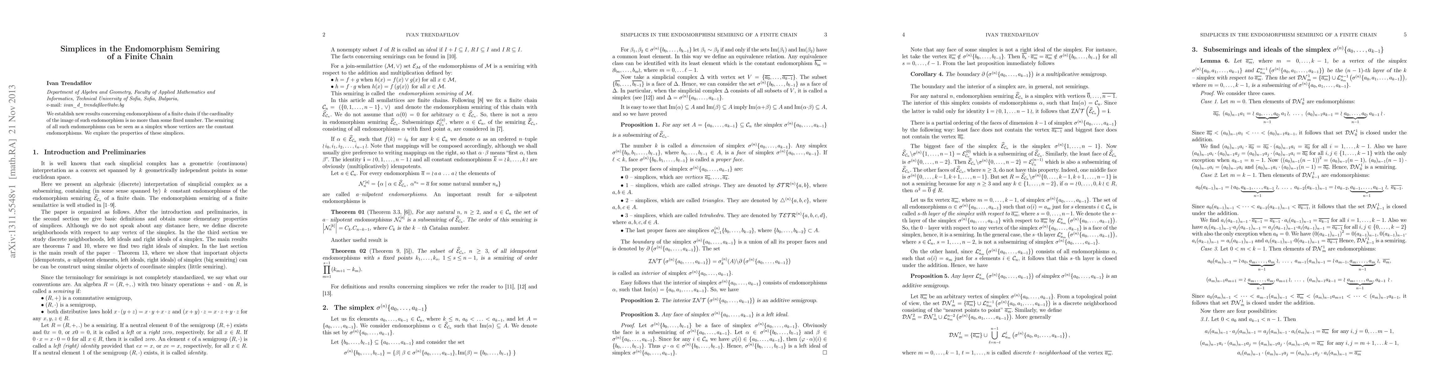 We establish new results concerning endomorphisms of a finite chain if the cardinality of the image of such endomorphism is no more than some fixed number. The semiring of all such endomorphisms can be seen as a simplex whose vertices are the constant endomorphisms. We explore the properties of these simplices.