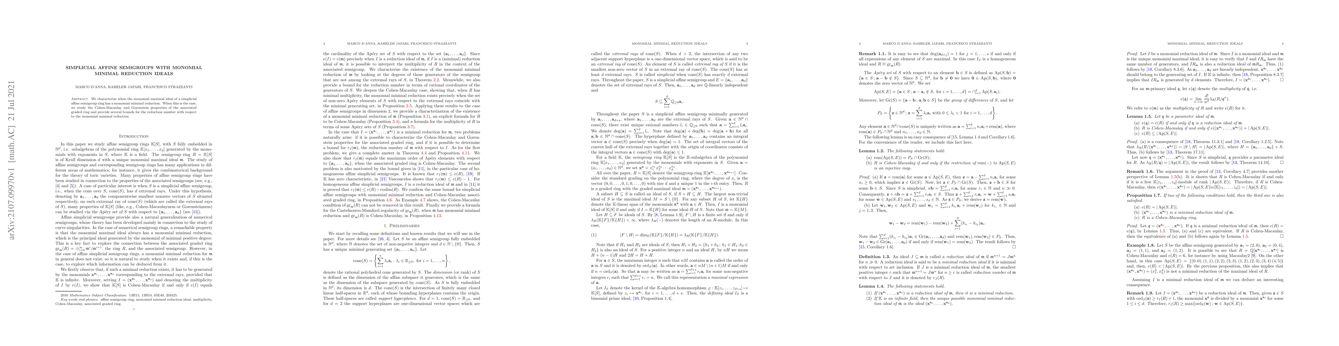 We characterize when the monomial maximal ideal of a simplicial affine semigroup ring has a monomial minimal reduction. When this is the case, we study the Cohen-Macaulay and Gorenstein properties of the associated graded ring and provide several bounds for the reduction number with respect to the monomial minimal reduction.
