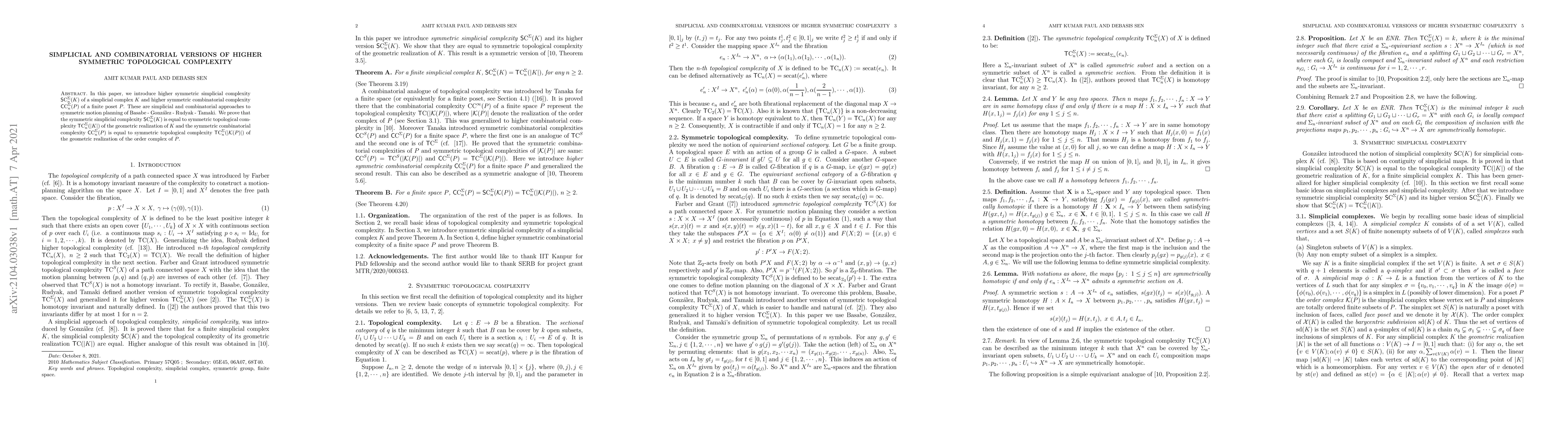 This paper introduces two new complexity measures for motion planning: simplicial and combinatorial versions of higher symmetric topological complexity. It shows that these measures are equivalent to the symmetric topological complexity of a complex's geometric realization.