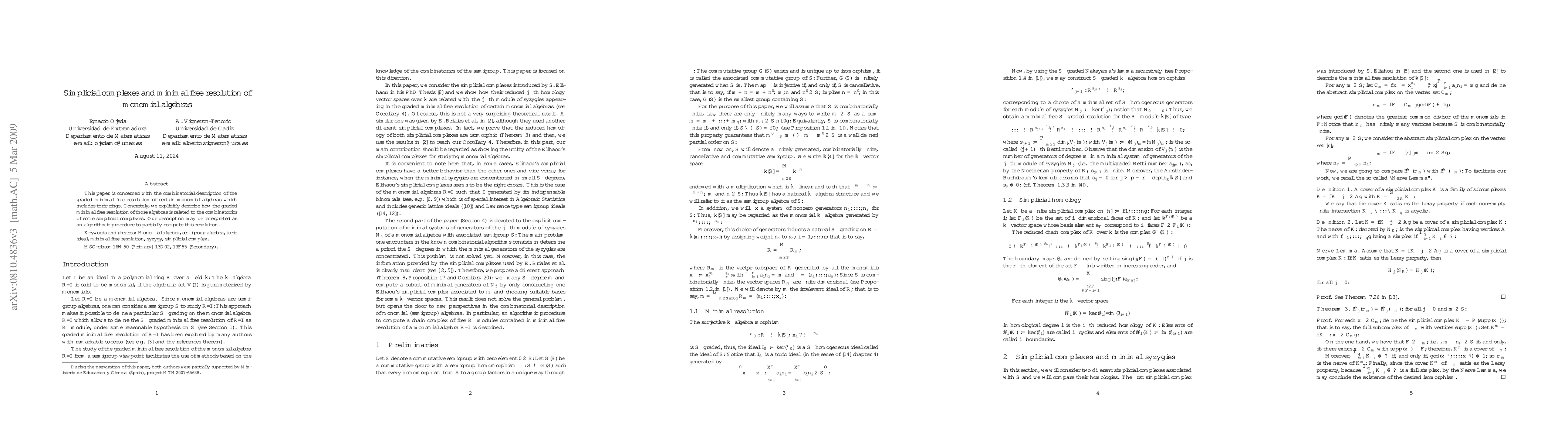 This paper provides a combinatorial description of the minimal free resolution of monomial algebras, particularly toric rings, relating it to the combinatorics of simplicial complexes, and proposes an algorithmic approach for computing this resolution.