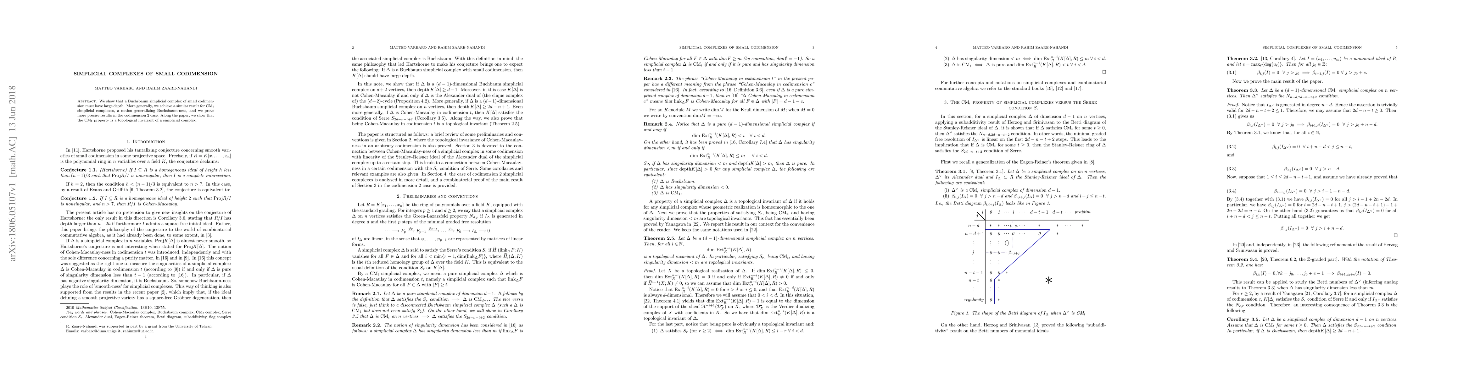 This paper demonstrates that Buchsbaum simplicial complexes with small codimension have significant depth, extending this result to ${\rm CM}_t$ simplicial complexes. It also establishes the ${\rm CM}_t$ property as a topological invariant and provides precise results for codimension 2 cases.