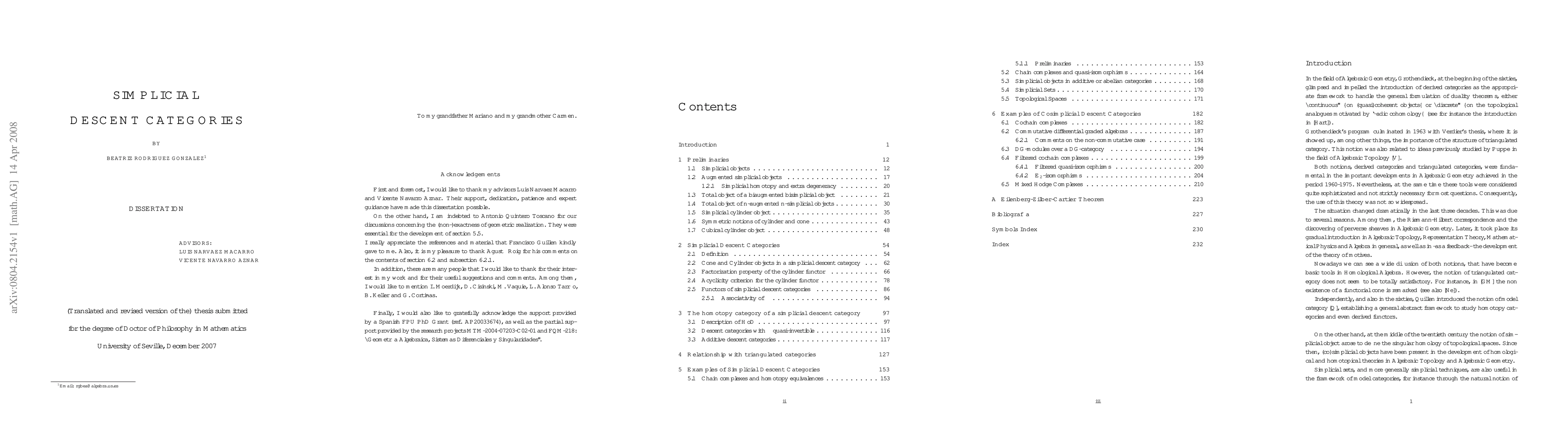 Much of the homotopical and homological structure of the categories of chain complexes and topological spaces can be deduced from the existence and properties of the 'simple' functors Tot : {double chain complexes} -> {chain complexes} and geometric realization : {sSets} -> {Top}, or similarly, Tot : {simplicial chain complexes} -> {chain complexes} and | | : {sTop} -> {Top}. The purpose of this thesis is to abstract this situation, and to this end we introduce the notion of '(co)simplicial descent category'. It is inspired by Guillen-Navarros's '(cubical) descent categories'. The key ingredients in a (co)simplicial descent category D are a class E of morphisms in D, called equivalences, and a 'simple' functor s : {(co)simplicial objects in D} -> D. They must satisfy axioms like 'Eilenberg-Zilber', 'exactness' and 'acyclicity'. This notion covers a wide class of examples, as chain complexes, sSets, topological spaces, filtered cochain complexes (where E = filtered quasi-isomorphisms or E = E_2-isomorphisms), commutative differential graded algebras (with s = Navarro's Thom-Whitney simple), DG-modules over a DG-category and mixed Hodge complexes, where s = Deligne's simple. From the simplicial descent structure we obtain homotopical structure on D, as cone and cylinder objects. We use them to i) explicitly describe the morphisms of HoD=D[E^{-1}] similarly to the case of calculus of fractions; ii) endow HoD with a non-additive pre-triangulated structure, that becomes triangulated in the stable additive case. These results use the properties of a 'total functor', which associates to any biaugmented bisimplicial object a simplicial object. It is the simplicial analogue of the total chain complex of a double complex, and it is left adjoint to Illusie's 'decalage' functor.