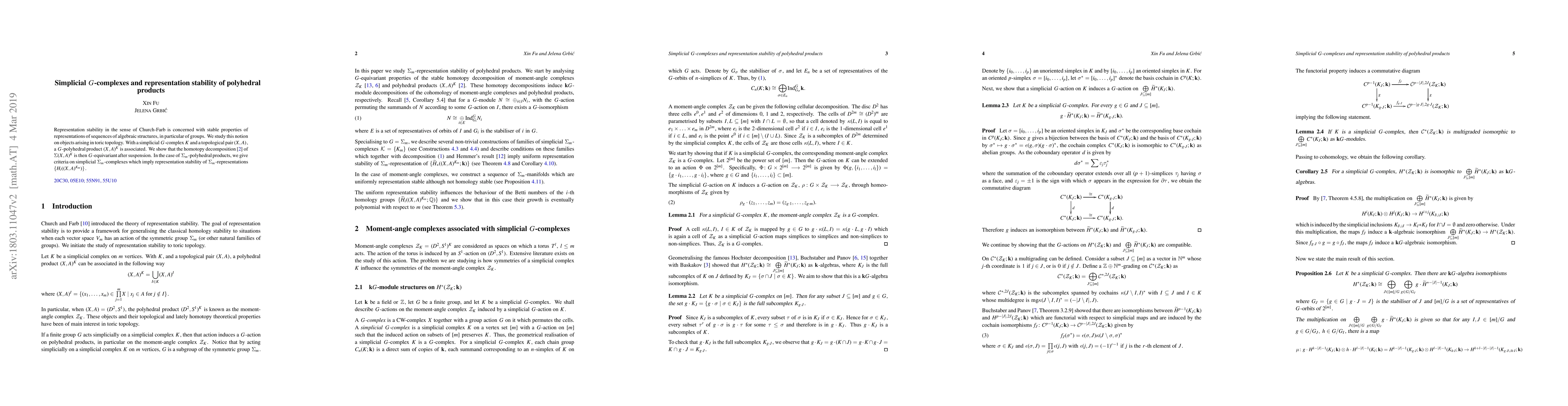This paper investigates representation stability in the context of simplicial $G$-complexes and polyhedral products, demonstrating that the homotopy decomposition of these products is $G$-equivariant after suspension. It provides criteria for simplicial $\Sigma_m$-complexes to ensure representation stability of $\Sigma_m$-representations.