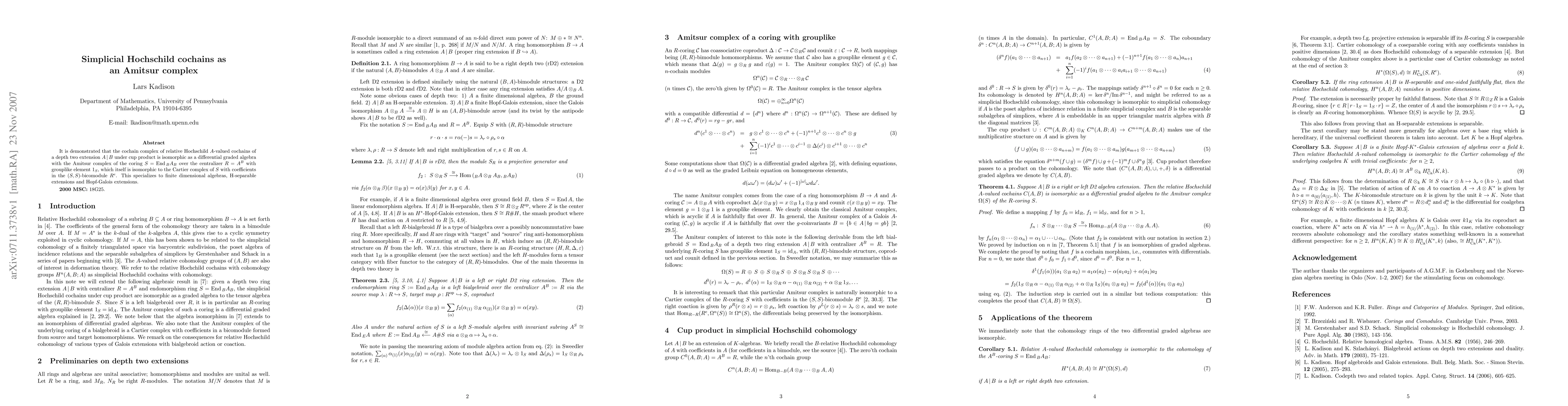 The paper demonstrates an isomorphism between the cochain complex of relative Hochschild cochains and the Amitsur complex for depth two extensions, extending this connection to finite dimensional algebras and specific types of extensions. The result aligns with the Cartier complex structure in the context of bicomodules.