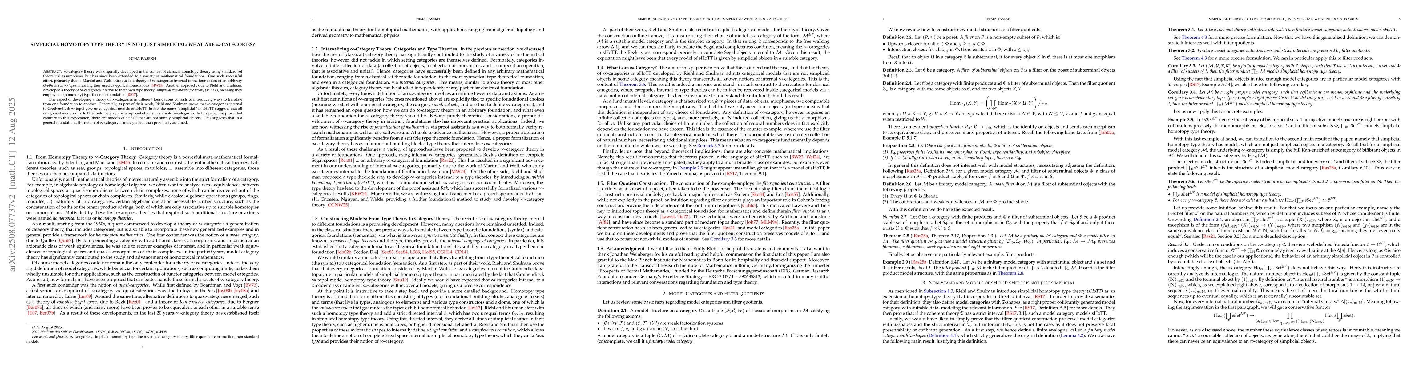$\infty$-category theory was originally developed in the context of classical homotopy theory using standard set theoretical assumptions, but has since been extended to a variety of mathematical foundations. One such successful effort, primarily due to Martini and Wolf, introduced a theory of $\infty$-categories internal to the foundation of an arbitrary Grothendieck $\infty$-topos, meaning they used categorical foundations. Another approach, due to Riehl and Shulman, developed a theory of $\infty$-categories internal to their own type theory: simplicial homotopy type theory (sHoTT), meaning they employed a (homotopy) type theoretic foundation. One aspect of developing a theory of $\infty$-categories in different foundations consists of introducing ways to translate from one foundation to another. Concretely, as part of their work, Riehl and Shulman prove that $\infty$-categories internal to Grothendieck $\infty$-topoi give us categorical models of sHoTT. In fact the name ``simplicial'' in sHoTT suggests that all categorical models of sHoTT should be given by simplicial objects in suitable $\infty$-categories. In this paper we prove that contrary to this expectation, there are models of sHoTT that are not simply simplicial objects. This suggests that in a general foundations, the notion of $\infty$-category is more general than previously assumed.