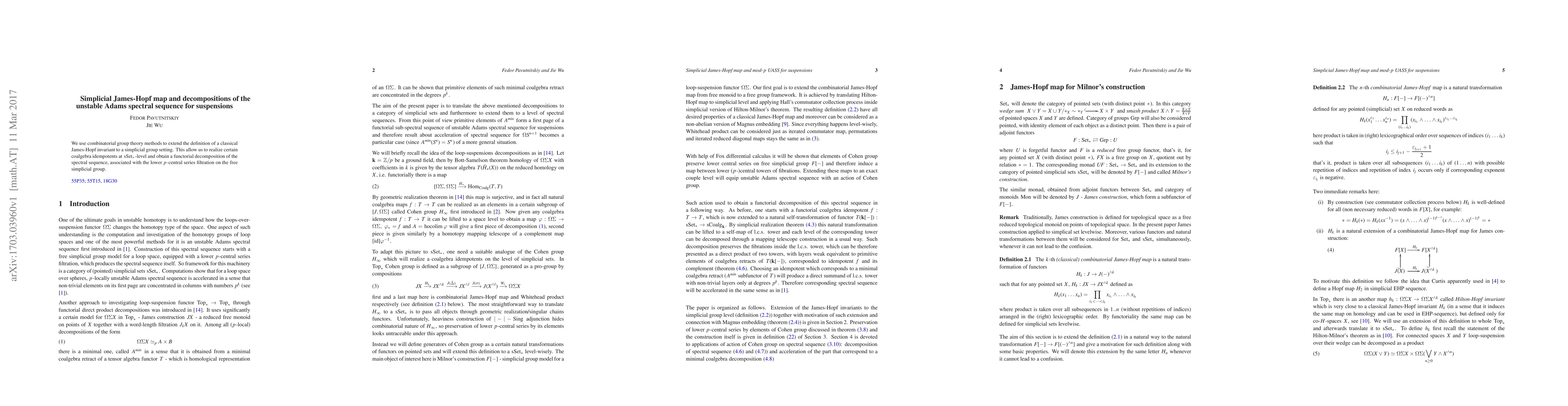We use combinatorial group theory methods to extend the definition of a classical James-Hopf invariant to a simplicial group setting. This allow us to realize certain coalgebra idempotents at sSet -level and obtain a functorial decomposition of the spectral sequence, associated with the lower p-central series filtration on the free simplicial group.