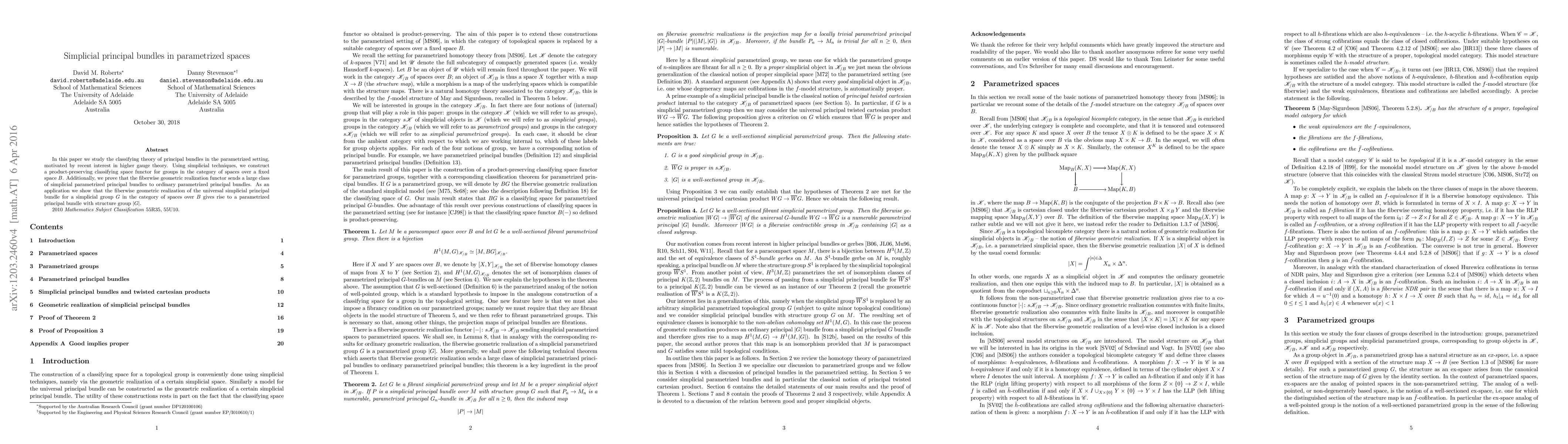 In this paper we study the classifying theory of principal bundles in the parametrized setting, motivated by recent interest in higher gauge theory. Using simplicial techniques, we construct a product-preserving classifying space functor for groups in the category of spaces over a fixed space B. Additionally, we prove that the fiberwise geometric realization functor sends a large class of simplicial parametrized principal bundles to ordinary parametrized principal bundles. As an application we show that the fiberwise geometric realization of the universal simplicial principal bundle for a simplicial group G in the category of spaces over B gives rise to a parametrized principal bundle with structure group |G|.