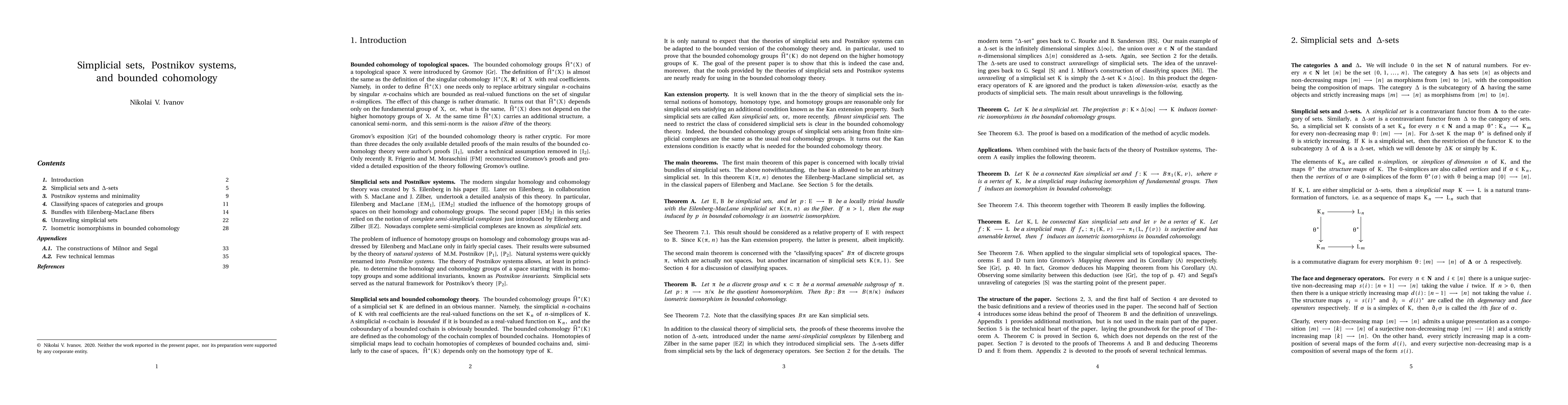 This paper extends the bounded cohomology theory of topological spaces to arbitrary Kan simplicial sets using simplicial set and Postnikov system theories. The results focus on the application of these advanced algebraic topological tools to enhance the understanding of bounded cohomology.