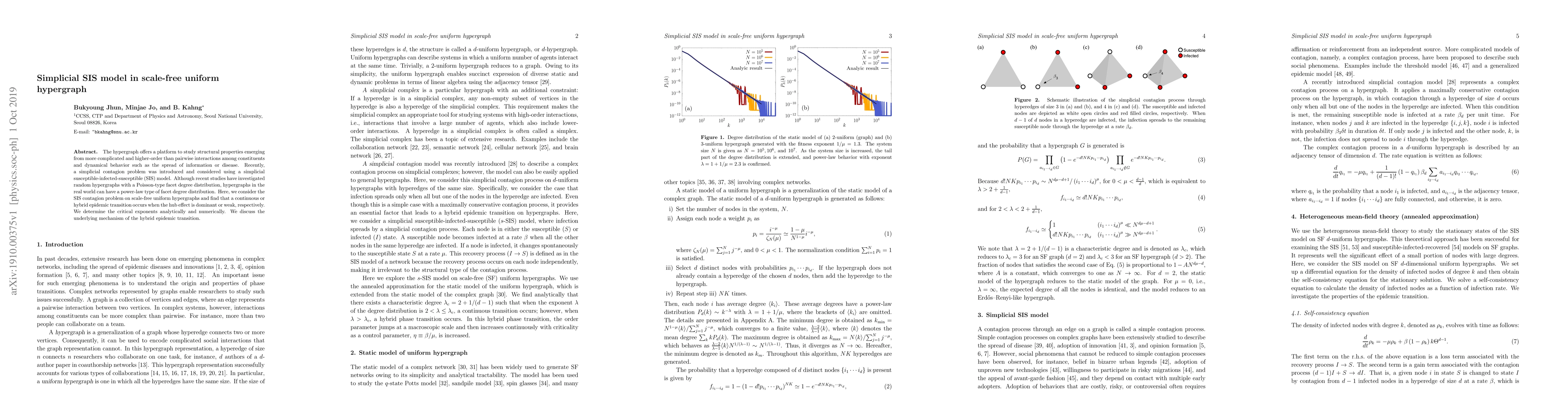 The hypergraph offers a platform to study structural properties emerging from more complicated and higher-order than pairwise interactions among constituents and dynamical behavior such as the spread of information or disease. Recently, a simplicial contagion problem was introduced and considered using a simplicial susceptible-infected-susceptible (SIS) model. Although recent studies have investigated random hypergraphs with a Poisson-type facet degree distribution, hypergraphs in the real world can have a power-law type of facet degree distribution. Here, we consider the SIS contagion problem on scale-free uniform hypergraphs and find that a continuous or hybrid epidemic transition occurs when the hub effect is dominant or weak, respectively. We determine the critical exponents analytically and numerically. We discuss the underlying mechanism of the hybrid epidemic transition.