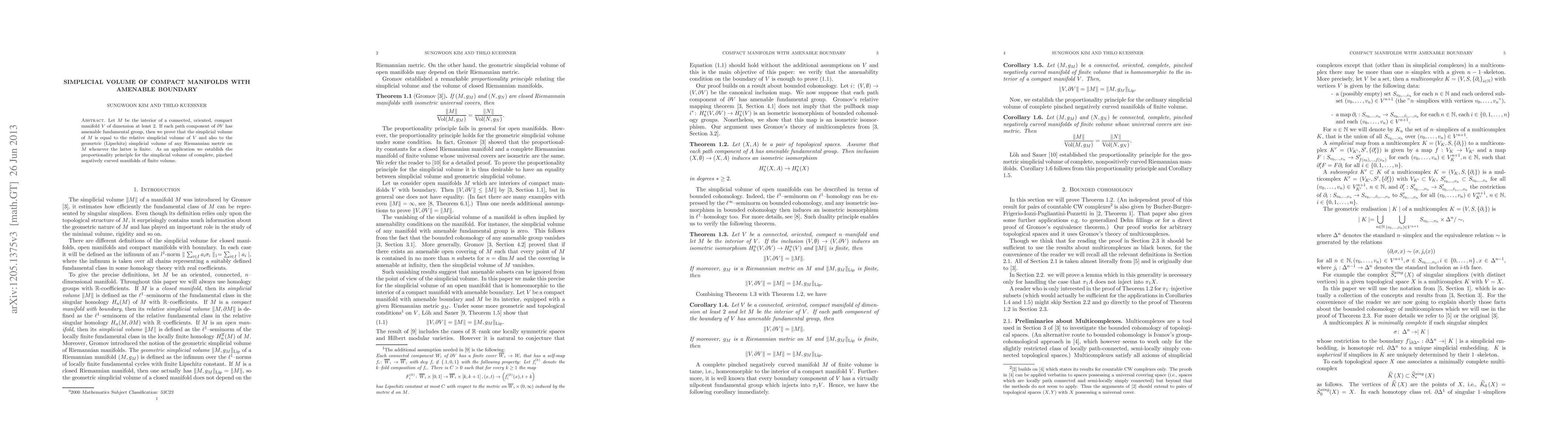 The paper establishes a detailed relationship between simplicial volumes and bounded cohomology, extending known results to manifolds with amenable boundary fundamental groups.