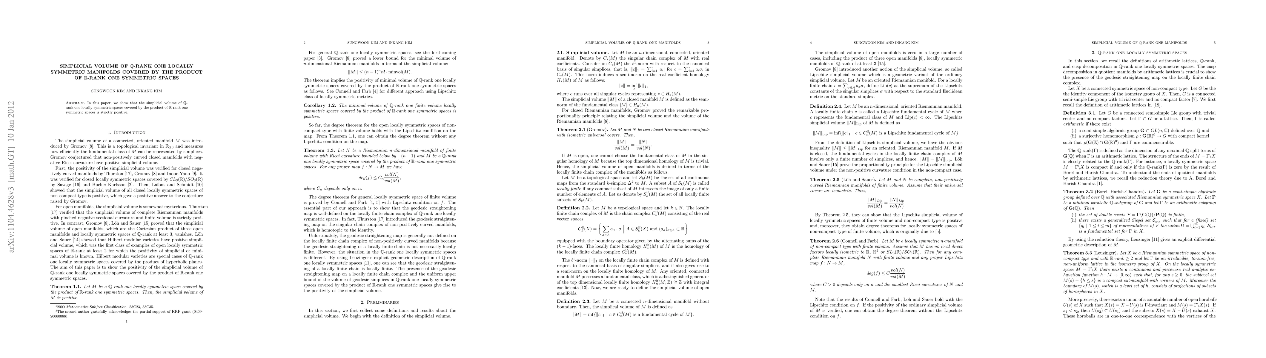 Summary: This paper demonstrates that the simplicial volume of Q-rank one locally symmetric manifolds, which are covered by the product of R-rank one symmetric spaces, is strictly positive. This finding provides new insights into the geometric and topological properties of these manifolds.