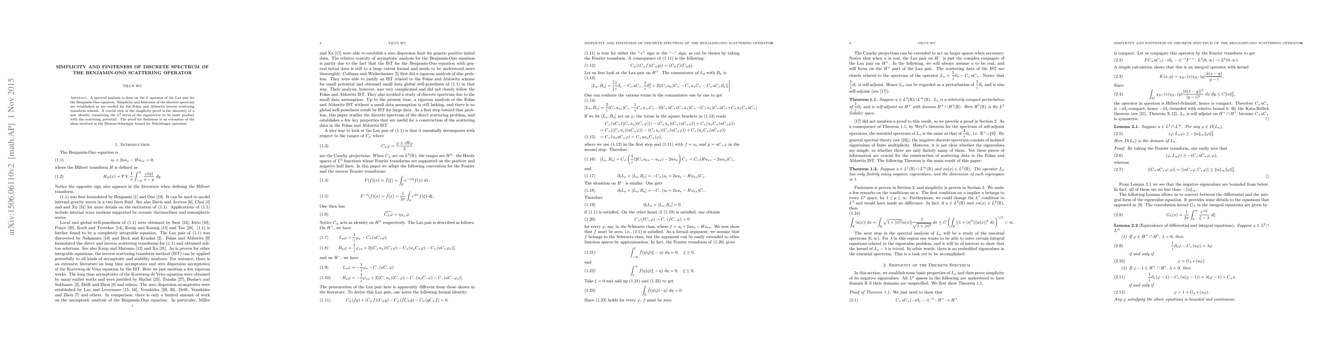 Researchers establish the simplicity and finiteness of a discrete spectrum for the Benjamin-Ono equation, crucial for an inverse scattering transform scheme.