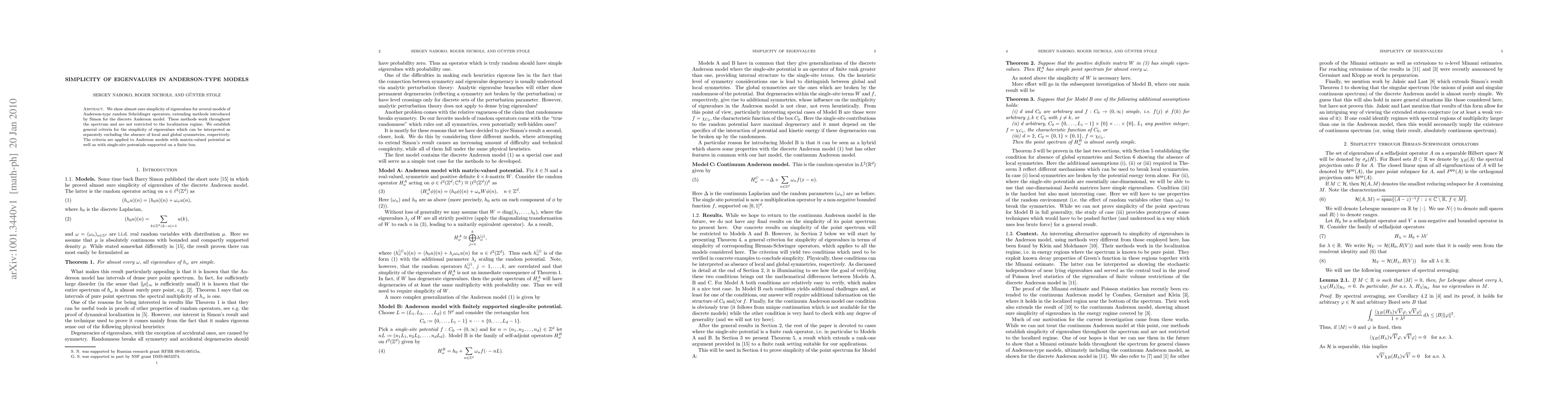 Researchers show that eigenvalues in certain types of random Schrödinger operators have simple values almost surely, extending existing methods to a broader range of models. This breakthrough provides new criteria for determining simplicity in eigenvalues, applicable to various Anderson-type models.