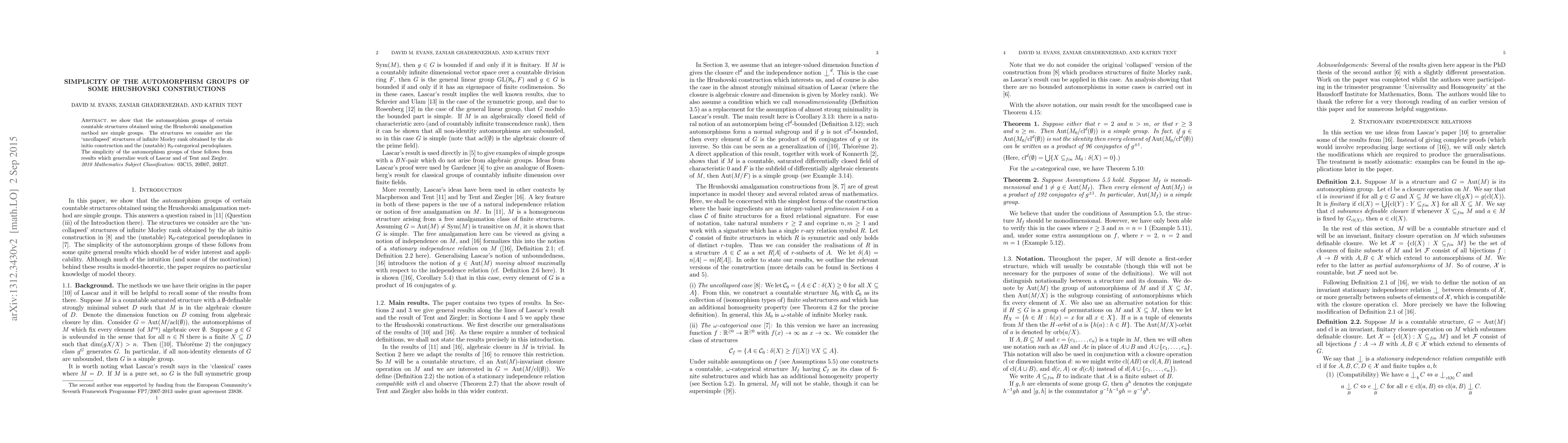 This paper demonstrates that the automorphism groups of specific countable structures derived via Hrushovski's amalgamation method are simple. The structures in focus include 'uncollapsed' pseudoplanes and ab initio constructions, with their simplicity stemming from generalized results extending the work of Lascar and Tent-Ziegler.