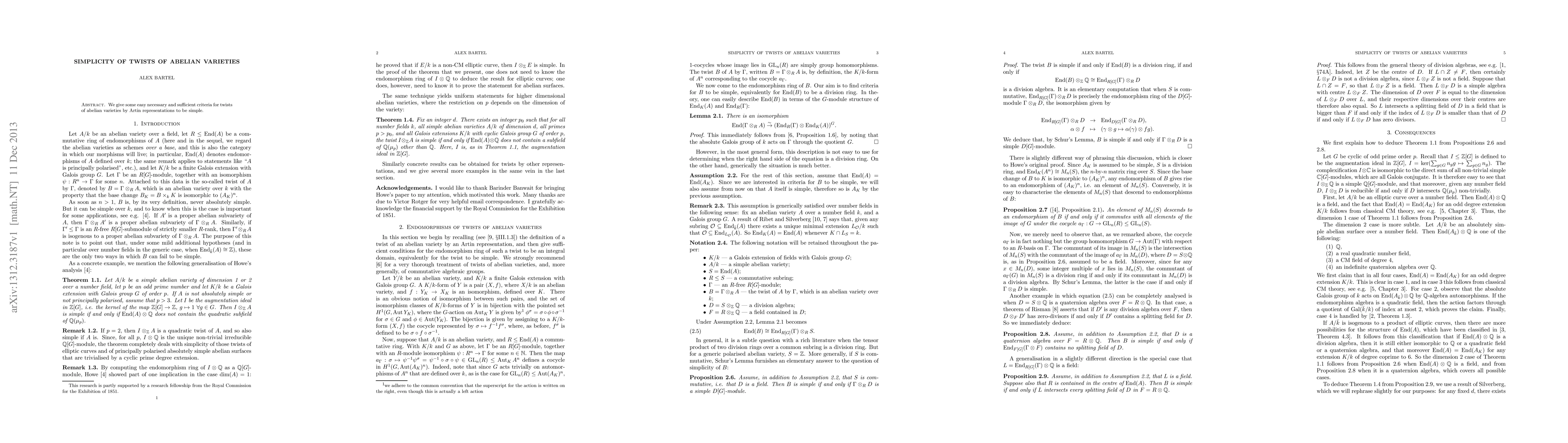 Summary: This paper provides straightforward criteria to determine when twists of abelian varieties by Artin representations result in simple varieties. The findings offer a clear method for assessing the simplicity of these twists.
