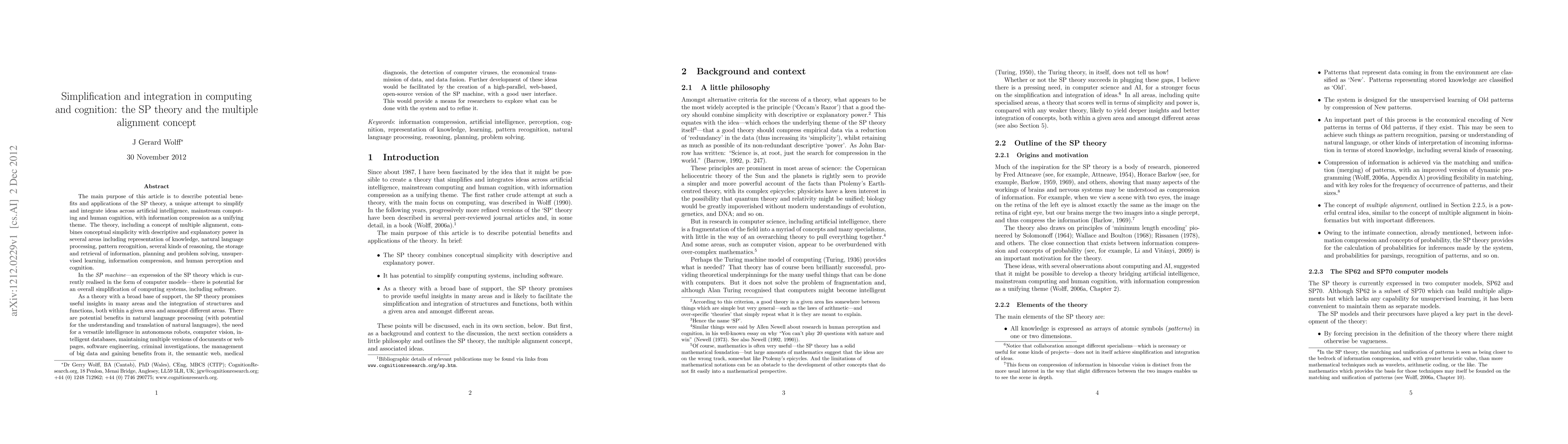 The SP theory aims to simplify and integrate ideas from AI, computing, and human cognition through information compression, offering potential benefits in areas like natural language processing, autonomous robots, and data analysis. A web-based, open-source version of the SP machine is proposed to facilitate further research and refinement.