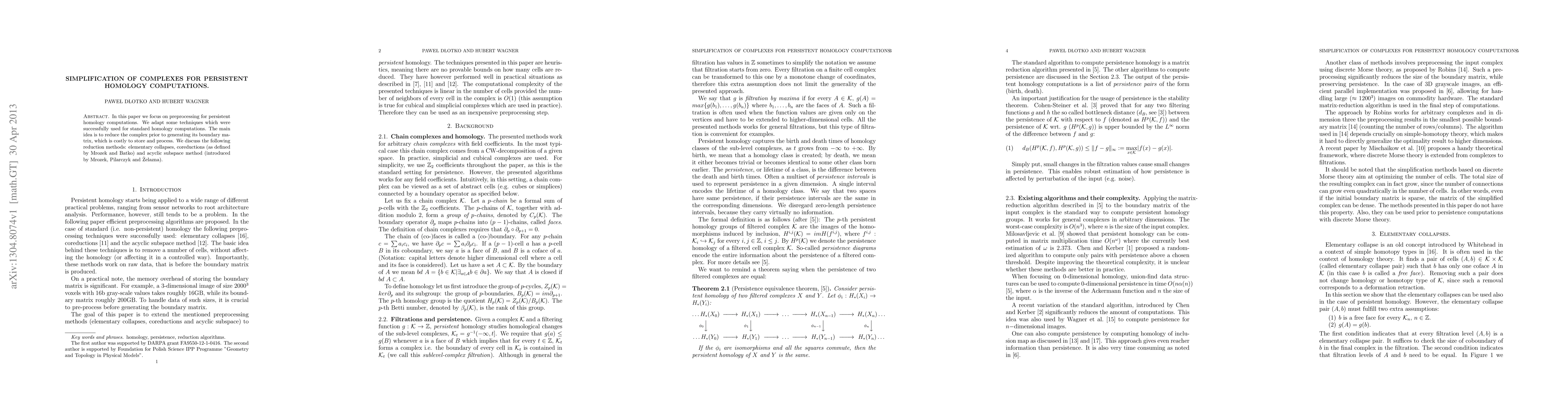 This paper explores preprocessing techniques to simplify complexes for efficient persistent homology computations, focusing on reducing the complex before generating its boundary matrix. It discusses methods like elementary collapses, coreductions, and the acyclic subspace method to achieve this reduction.