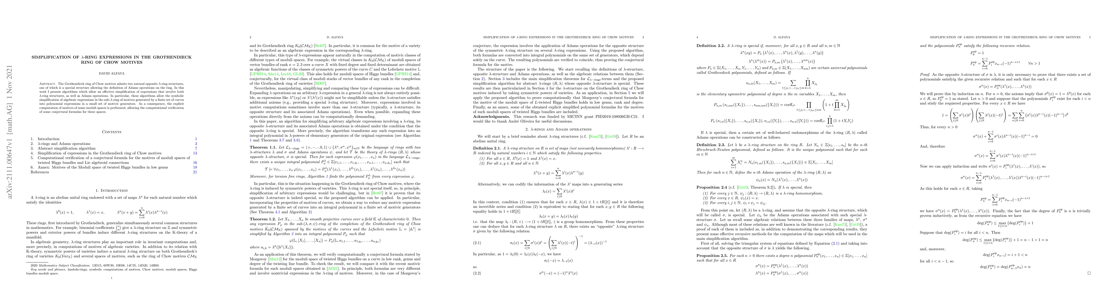 The paper presents algorithms for simplifying $\lambda$-ring expressions involving two opposite $\lambda$-ring structures in the Grothendieck ring of Chow motives, facilitating symbolic simplification into polynomial expressions in a small set of motivic generators.