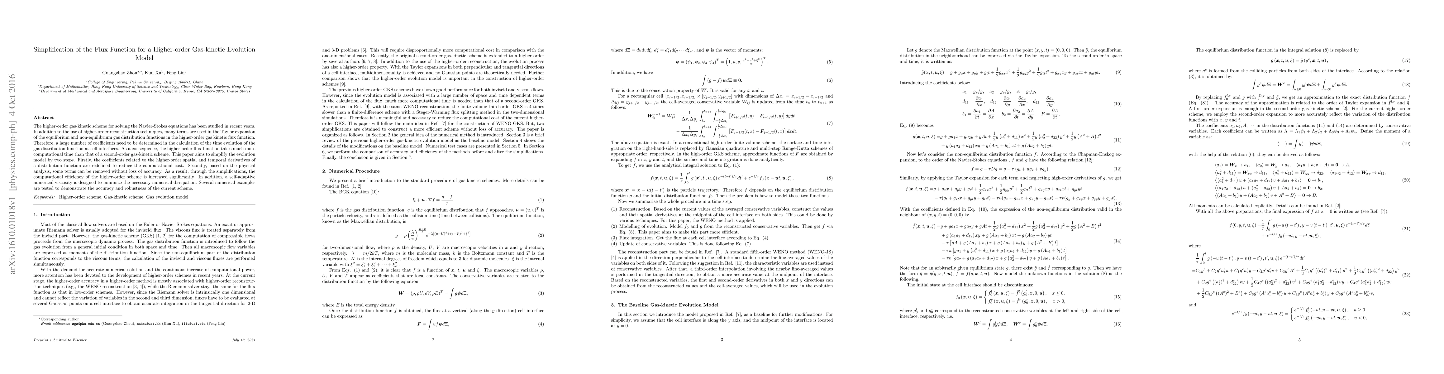 The higher-order gas-kinetic scheme for solving the Navier-Stokes equations has been studied in recent years. In addition to the use of higher-order reconstruction techniques, many terms are used in the Taylor expansion of the gas distribution functions. Therefore, a large number of coefficients need to be determined in the calculation of the time evolution of the gas distribution function at cell interfaces. As a consequence, the higher-order flux function takes much more computational time than that of a second-order gas-kinetic scheme. This paper aims to simplify the evolution model by two steps. Firstly, the coefficients related to the higher-order spatial and temporal derivatives of a distribution function are redefined to reduce the computational cost. Secondly, based on the physical analysis, some terms can be removed without loss of accuracy. Through the simplifications, the computational efficiency of the higher-order scheme is increased significantly. In addition, a self-adaptive numerical viscosity is designed to minimize the necessary numerical dissipation. Several numerical examples are tested to demonstrate the accuracy and robustness of the current scheme.