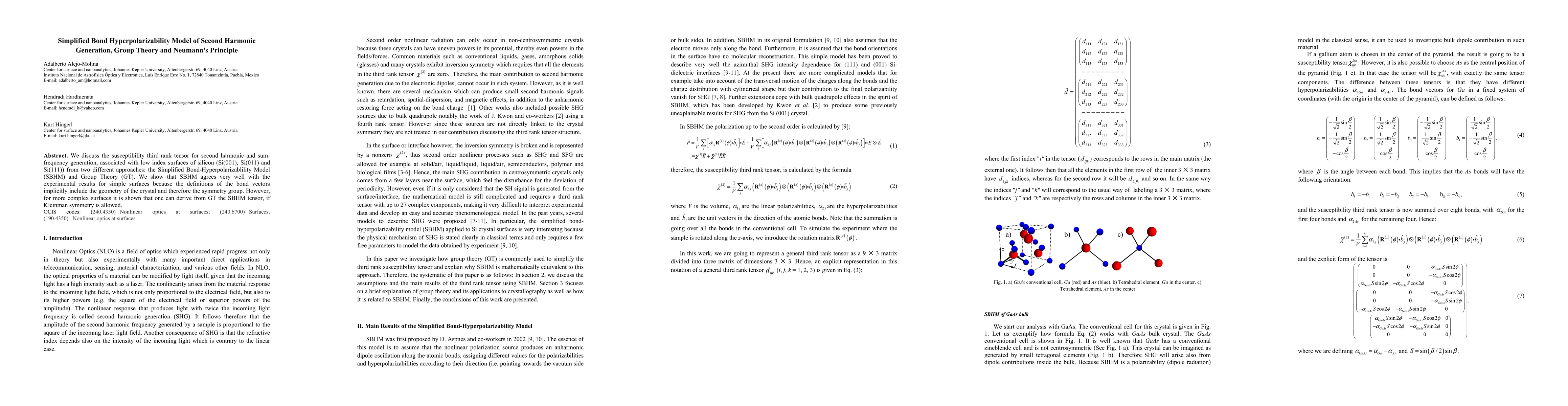 Researchers develop a simplified model for second harmonic generation in silicon surfaces using both Group Theory and Neumann's Principle, showing good agreement with experimental results for simple surfaces.