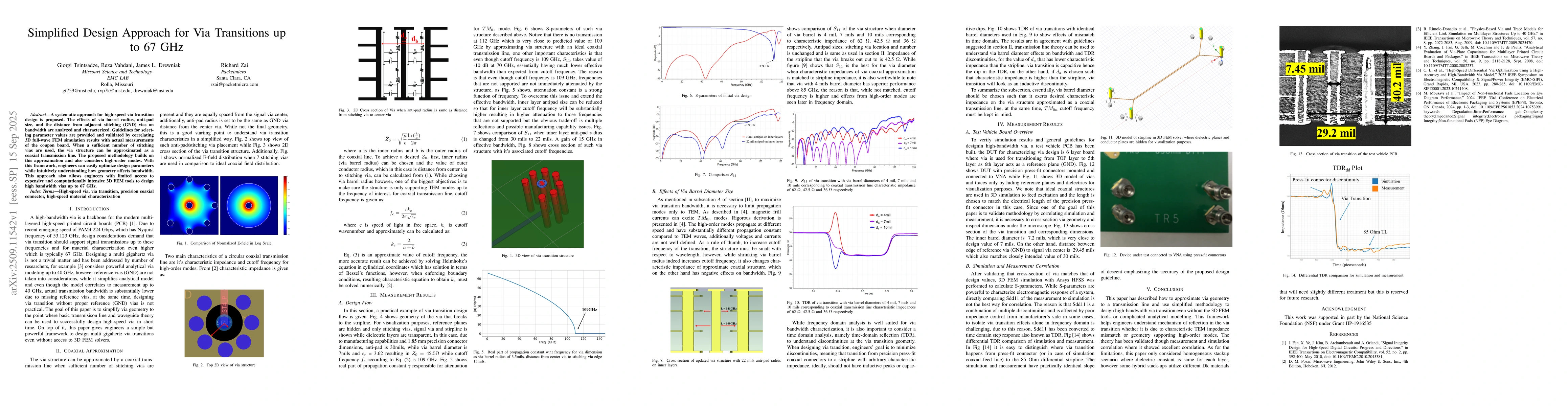 The research proposes a simplified design approach for high-speed via transitions by approximating via structures as coaxial transmission lines and analyzing parameters like via barrel radius, anti-pad size, and distance to stitching vias using 3D full-wave FEM simulations and experimental validation.