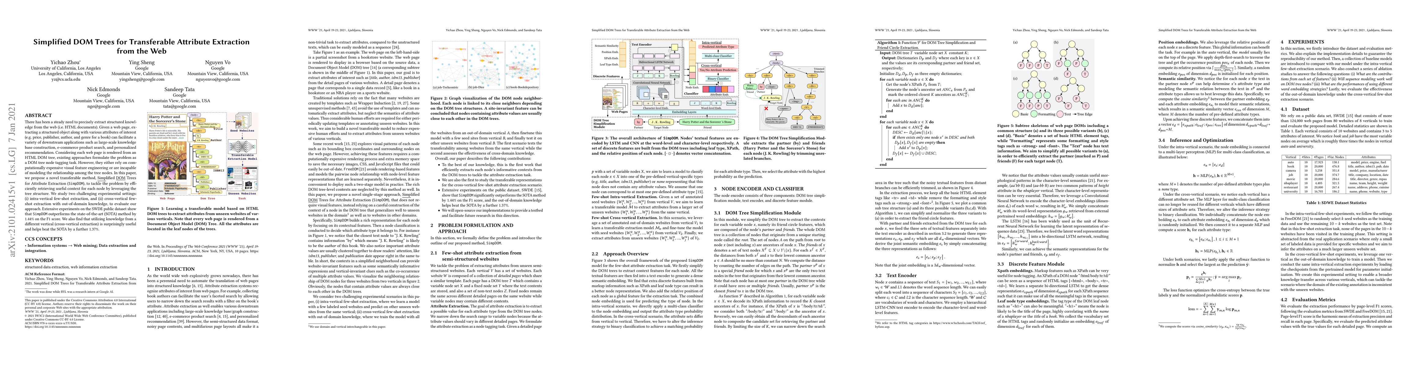 This paper introduces SimpDOM, a novel method for extracting structured attributes from web pages by simplifying DOM trees to efficiently retrieve context. SimpDOM outperforms existing methods in few-shot extraction tasks, especially when leveraging cross-vertical knowledge, achieving a 1.44% improvement over the SOTA on the F1 score.