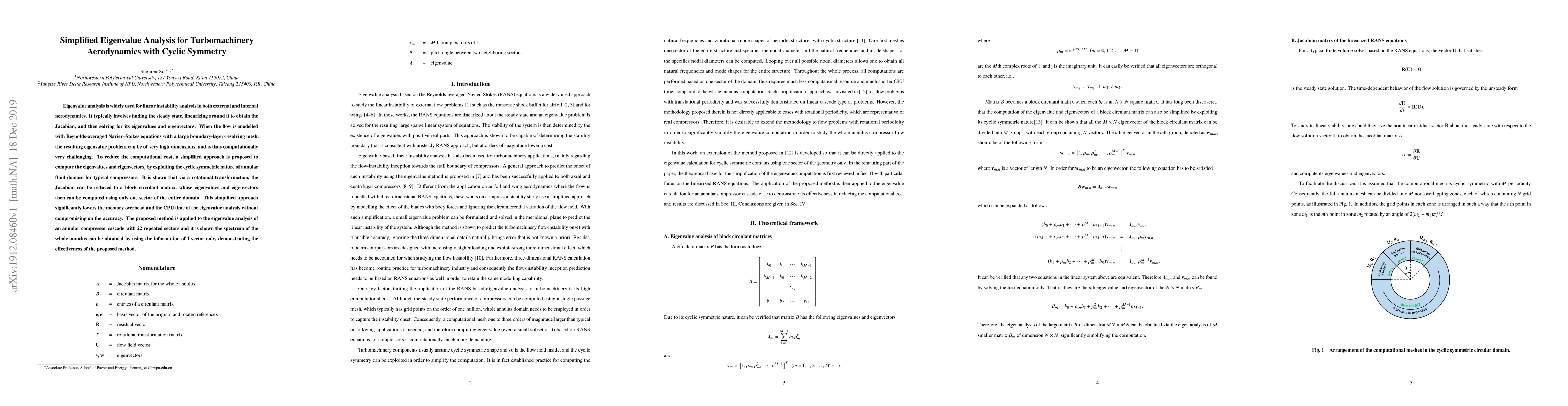 Researchers developed a simplified method to analyze stability in turbomachinery aerodynamics using eigenvalue analysis, reducing computational cost without compromising accuracy, and demonstrated its effectiveness on a 22-sector annular compressor cascade.