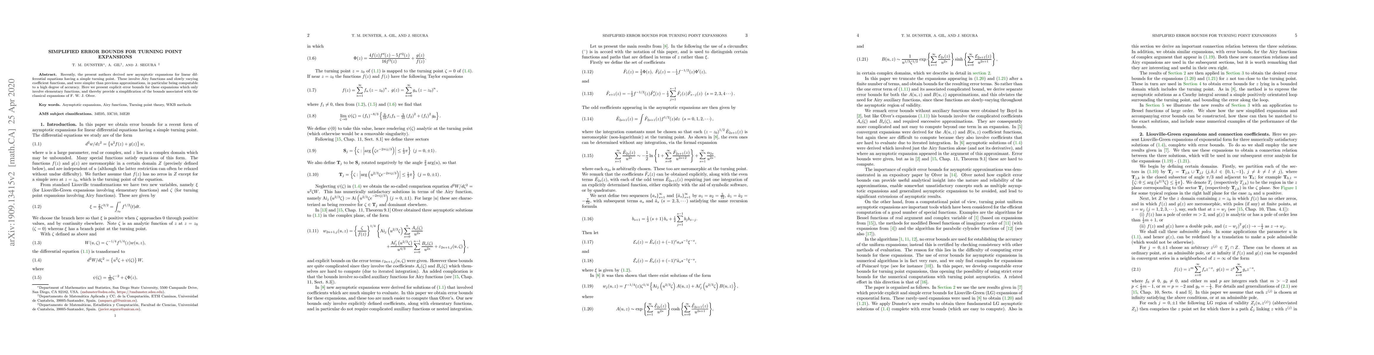 This paper presents simplified error bounds for new asymptotic expansions derived for linear differential equations with a simple turning point, involving Airy functions and computable to high accuracy. The error bounds are expressed using only elementary functions, simplifying the classical bounds of F. W. J. Olver.