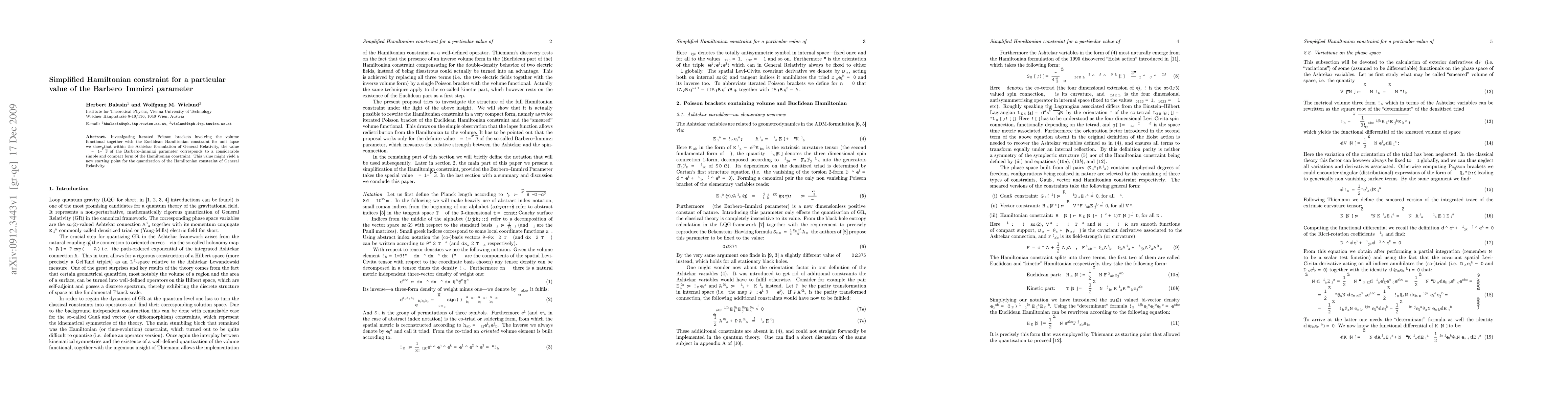 Two-line summary: This paper demonstrates that in the Ashtekar formulation of General Relativity, the Lorentzian Hamiltonian constraint simplifies significantly at a specific value of the Barbero-Immirzi parameter. This simplification provides a more manageable form for theoretical analysis.